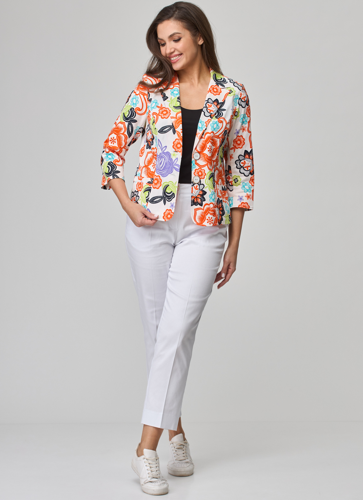 Жакет БЕЛЭЛЬСТИЛЬ 203 молочный оранжевые цветы