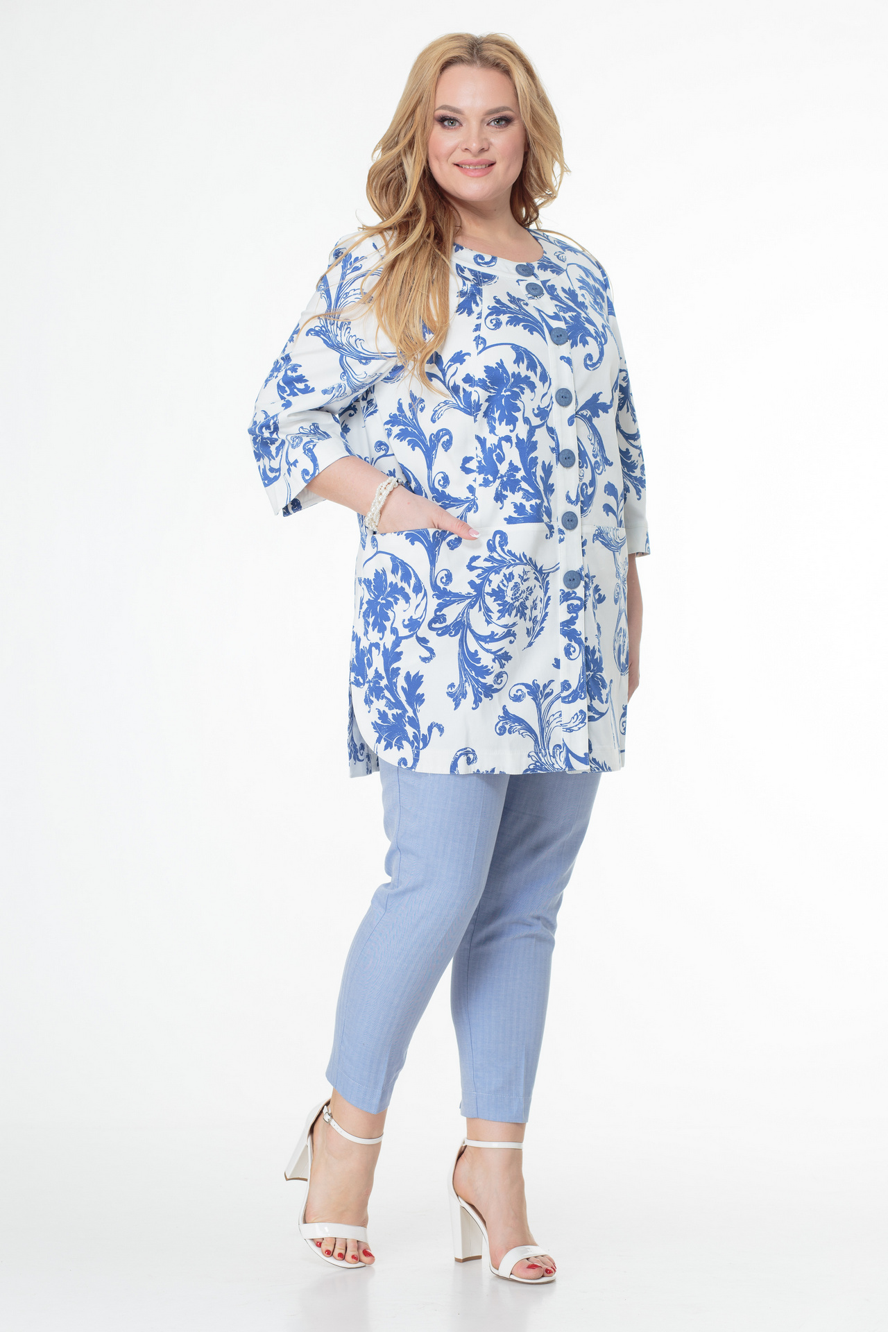 Жакет БЕЛЭЛЬСТИЛЬ 756 белый синие вензеля