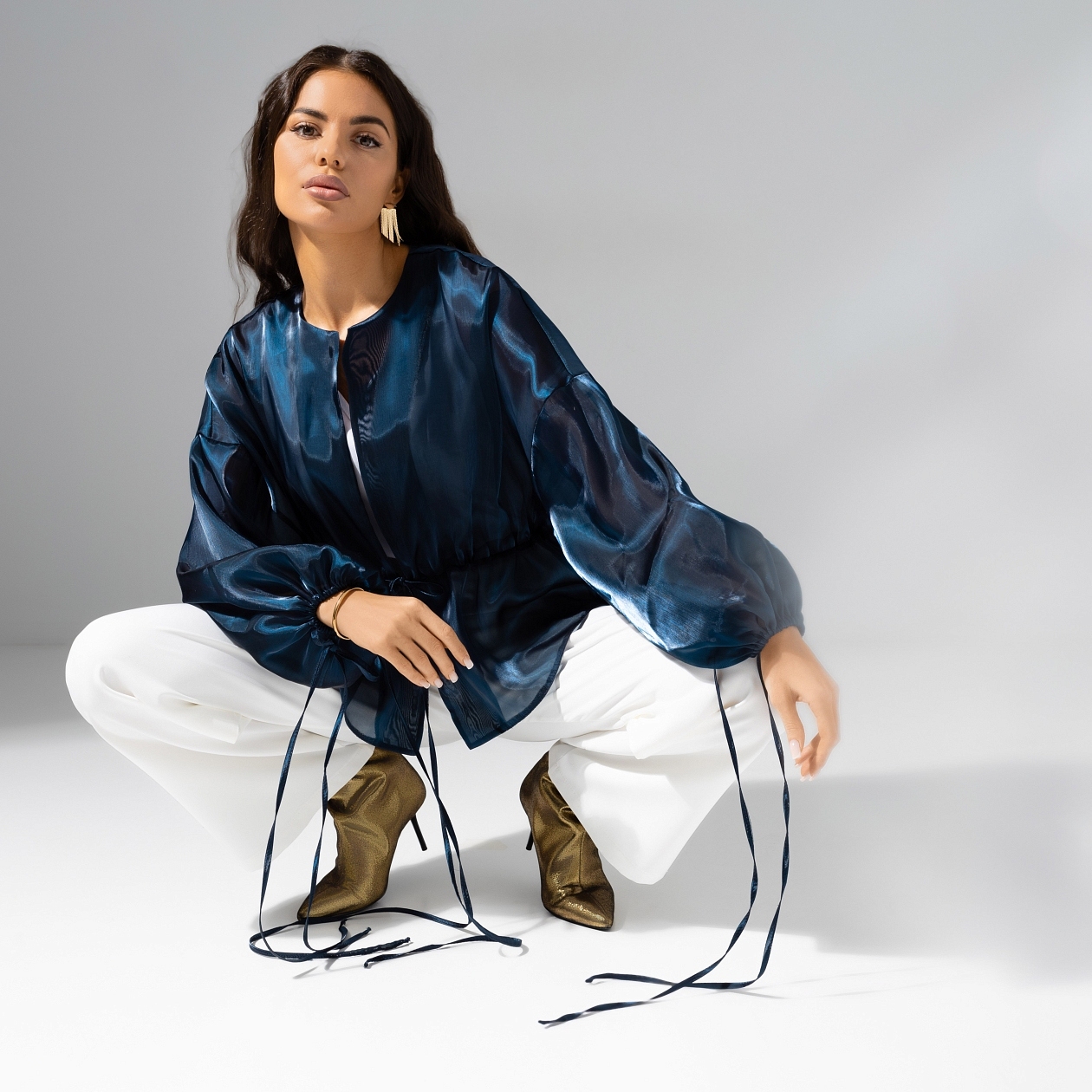 Ты попала в самые модные паблики города, засветилась в ленте новостных каналов и возглавила fashion-рейтинги. Все это случилось после твоего выхода в свет в жакете CHARUTTI. Проснулась звездой! Жакет из полупрозрачной органзы на завязках. Спущенная линия рукава. Рукава объемные, обрамлены длинными завязками по манжету в тон изделия.