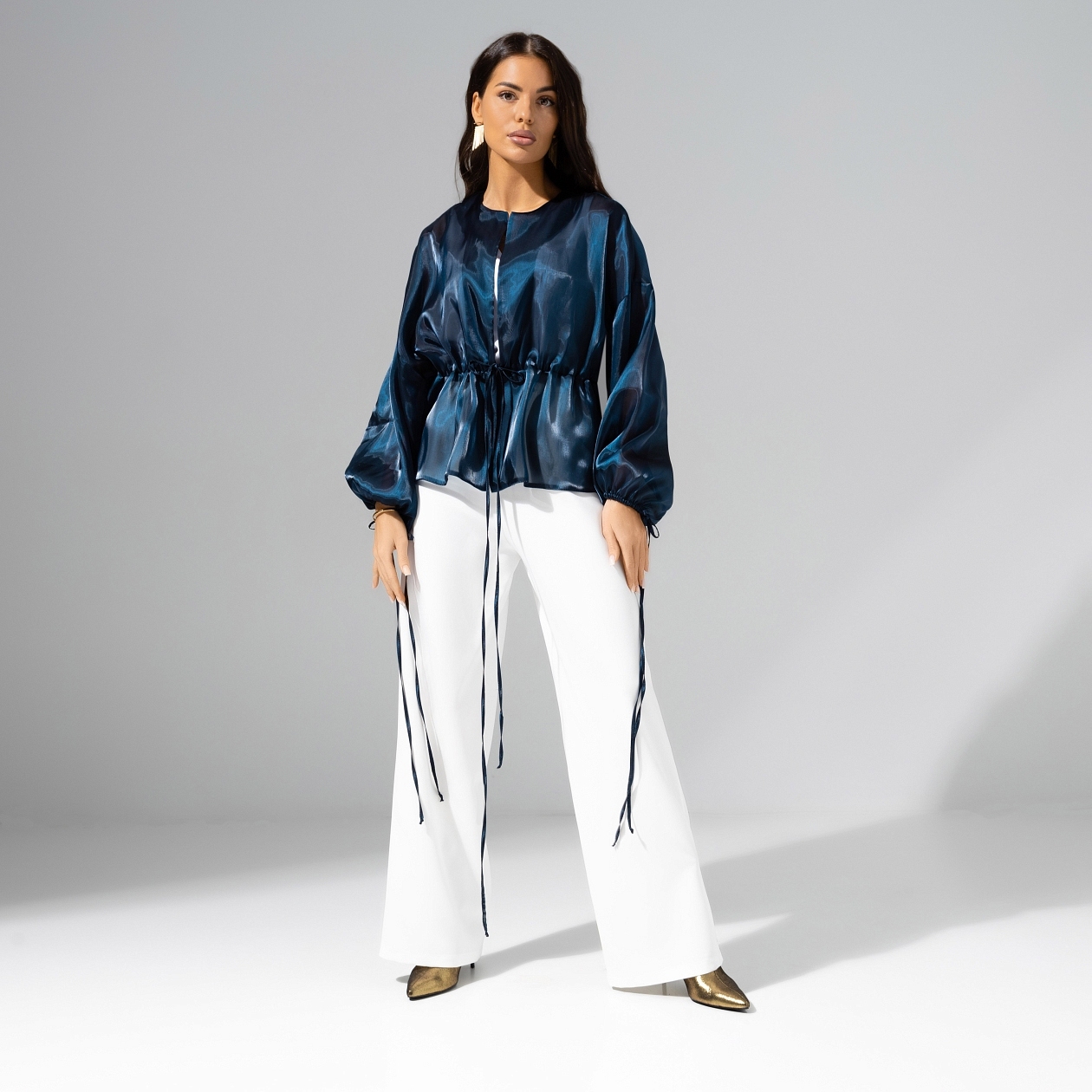Ты попала в самые модные паблики города, засветилась в ленте новостных каналов и возглавила fashion-рейтинги. Все это случилось после твоего выхода в свет в жакете CHARUTTI. Проснулась звездой! Жакет из полупрозрачной органзы на завязках. Спущенная линия рукава. Рукава объемные, обрамлены длинными завязками по манжету в тон изделия.