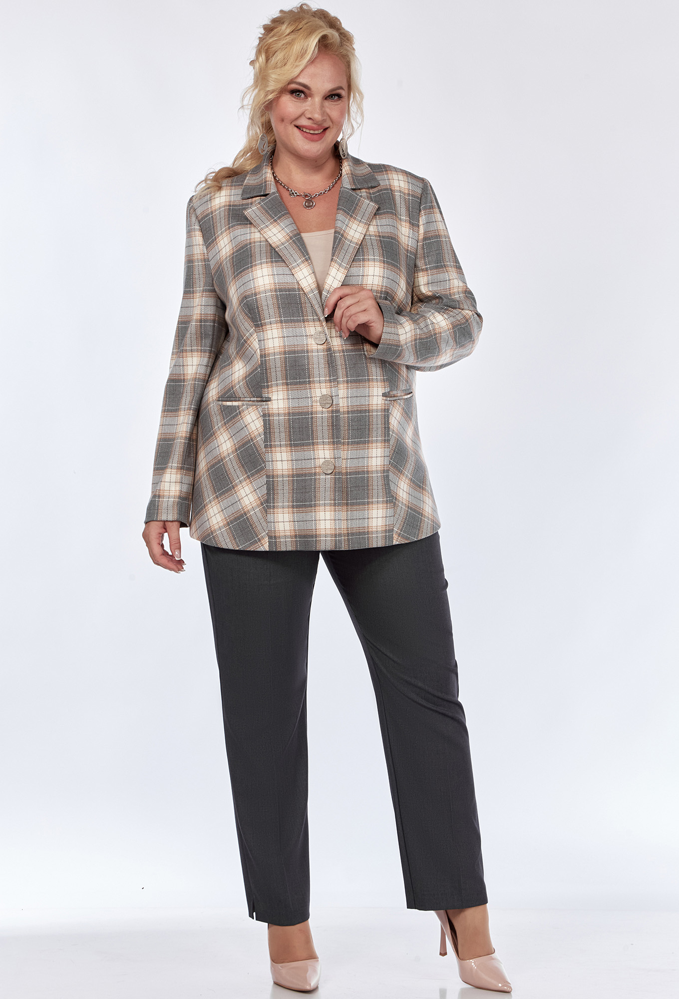 Модель: Элль-Стиль 2016 коричнево-бежевый<..показать/li> Рост: 164 см (девушка на фото ростом 170см) Сезон: Круглогодичный Тип ткани: Полиэстер 50%, вискоза 50%Жакет полуприлегающего силуэта, полочки обработаны подкладкой. На полочке вертикальные вытачки, карманы прорезные в рамку. Воротник пиджачного типа. Застежка на три петли, три пуговицы. Рукав втачной двухшовный. Спинка со средним швом, рельефными вытачками. Длина жакета 56-60р 72 см. Длина рукава 56-60р 60 см./li>