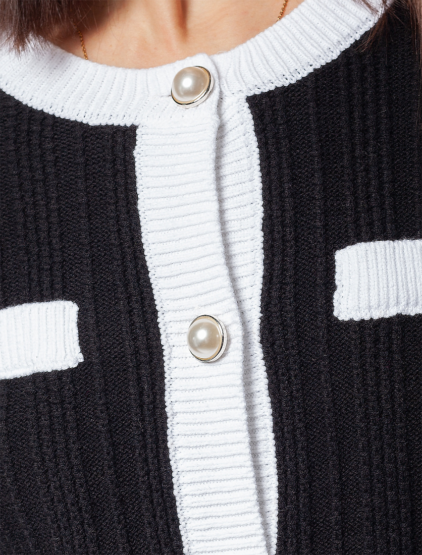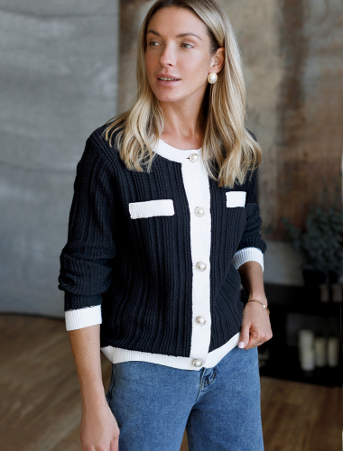 Жакет фактурной вязки выполнен из мягкой хлопковой пряжи с добавлением акрила. Изделие из такого материала исключительно приятно ощущается на коже, поэтому его комфортно носить даже на голое тело. Модель украсили золотистыми пуговицами с жемчужной вставкой. Сочетайте в костюме с юбкой D36.014 чтобы получить завершённый элегантный образ.