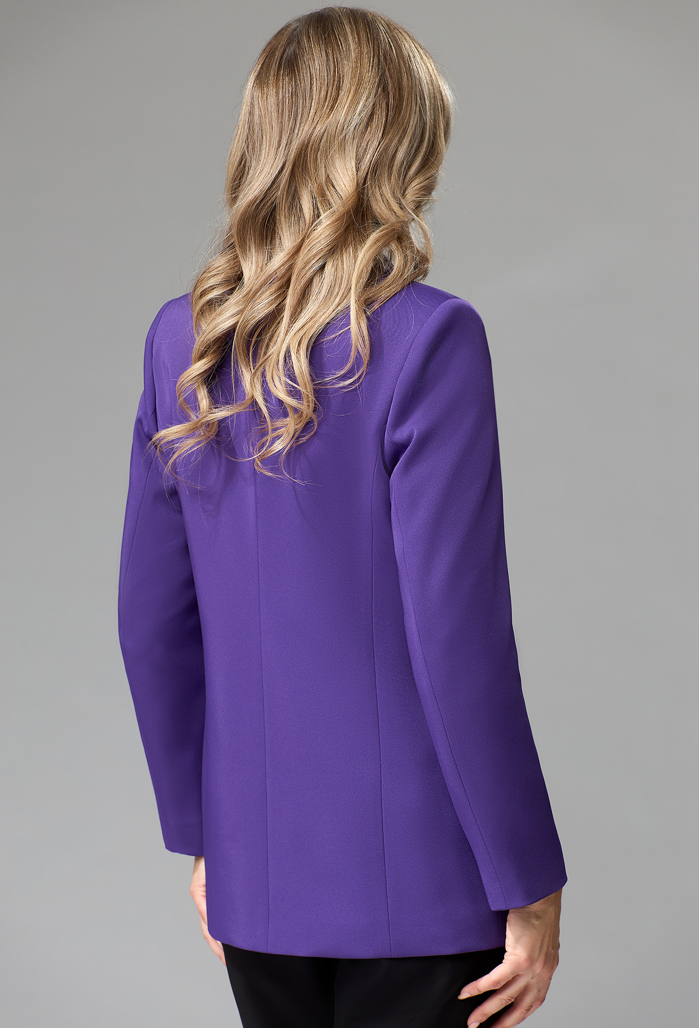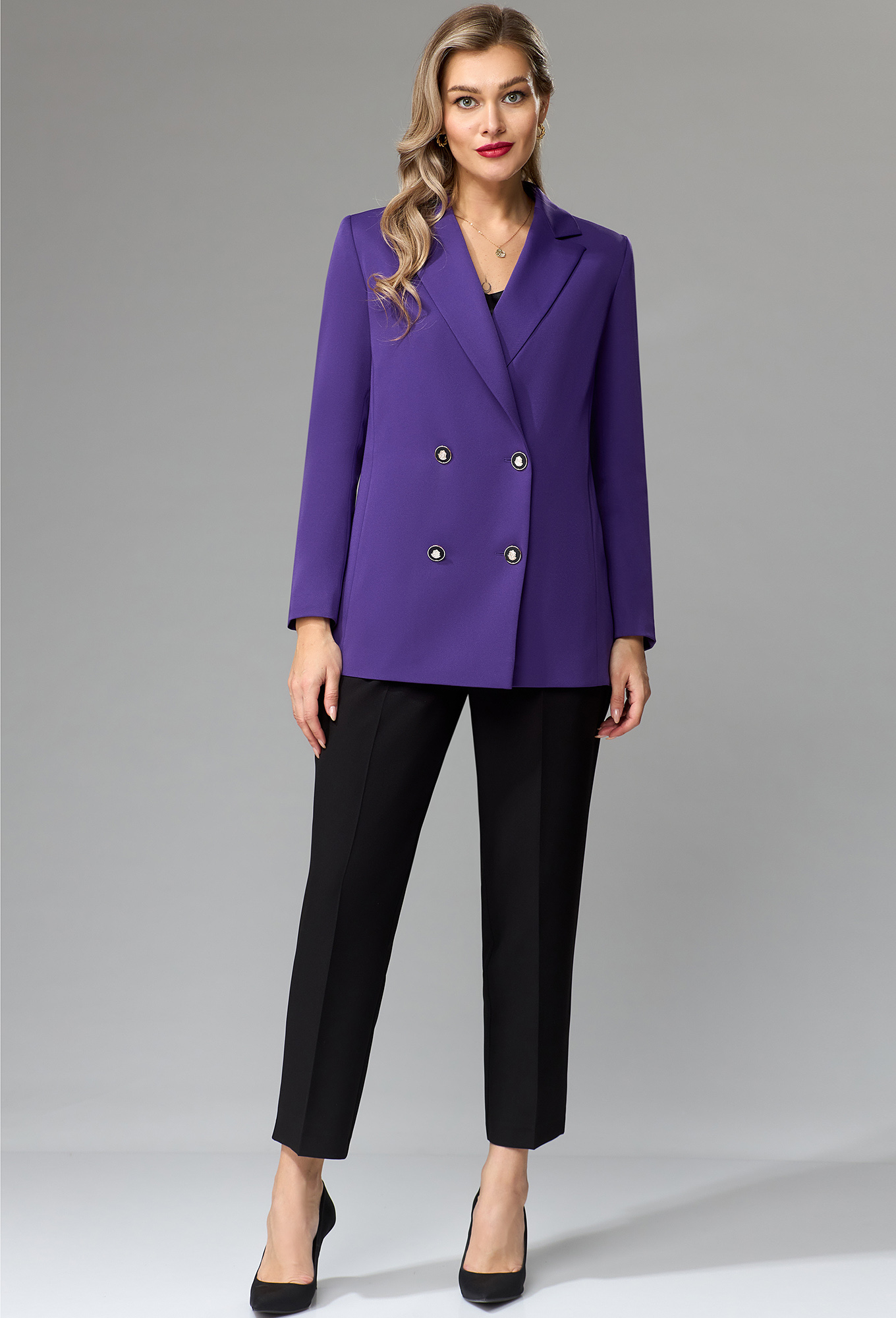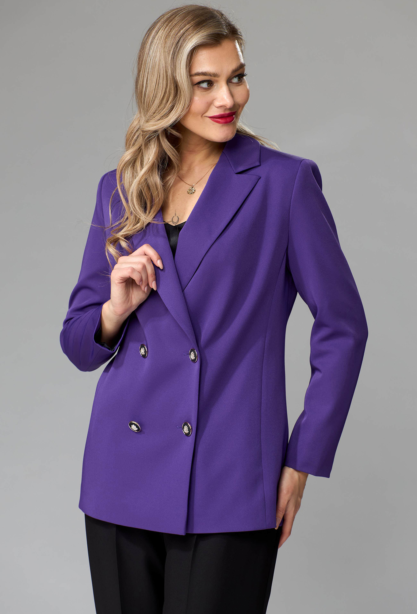 Модель: Гизарт 17551 фиолет Рост:..показать 164 см (девушка на фото ростом 170см) Сезон: Круглогодичный Тип ткани: Полиэстер 97% , спандекс 3%Жакет свободного силуэта, с двубортной с застежкой на четыре пуговицы. Полочки с отрезными бочками, с нагрудной вытачкой из горловины закрытой лацканом. Спинка со средним швом и двумя отрезными бочками. Рукав двухшовный втачной. Жакет на подкладке.