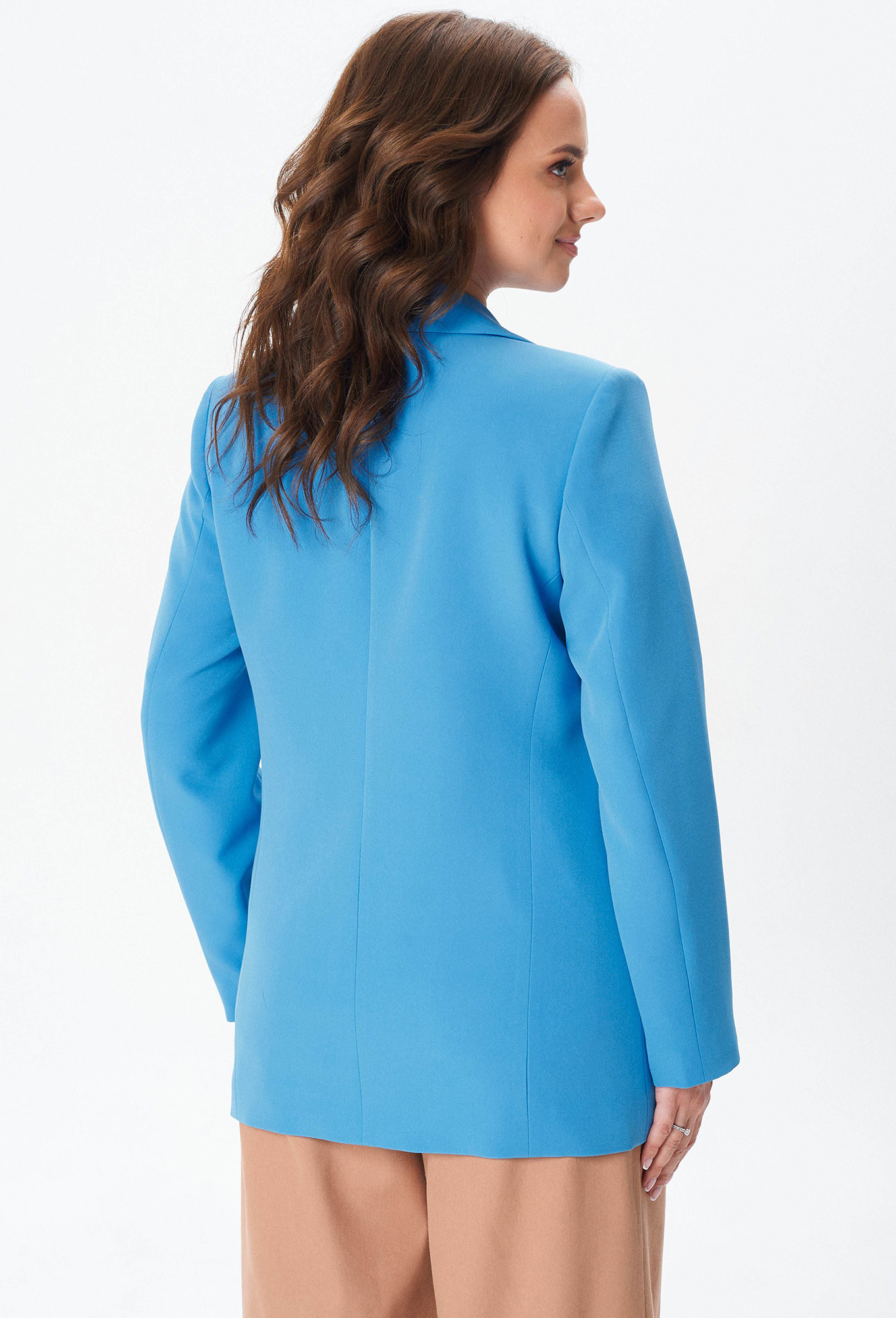 Модель: Гизарт 17551 голубой Рост..показать: 164 см (девушка на фото ростом 170см) Сезон: Круглогодичный Тип ткани: Полиэстер 97% , спандекс 3%Жакет свободного силуэта, с двубортной с застежкой на четыре пуговицы. Полочки с отрезными бочками, с нагрудной вытачкой из горловины закрытой лацканом. Спинка со средним швом и двумя отрезными бочками. Рукав двухшовный втачной. Жакет на подкладке.
