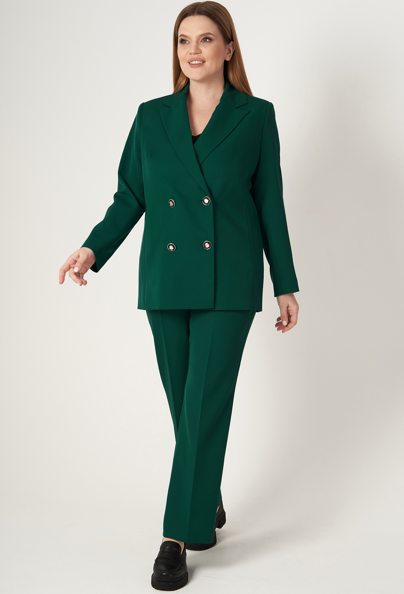 Модель: Гизарт 17551 изумруд Рост..показать: 164 см (девушка на фото ростом 170см) Сезон: Круглогодичный Тип ткани: Полиэстер 97% , спандекс 3%Жакет свободного силуэта, с двубортной с застежкой на четыре пуговицы. Полочки с отрезными бочками, с нагрудной вытачкой из горловины закрытой лацканом. Спинка со средним швом и двумя отрезными бочками. Рукав двухшовный втачной. Жакет на подкладке.