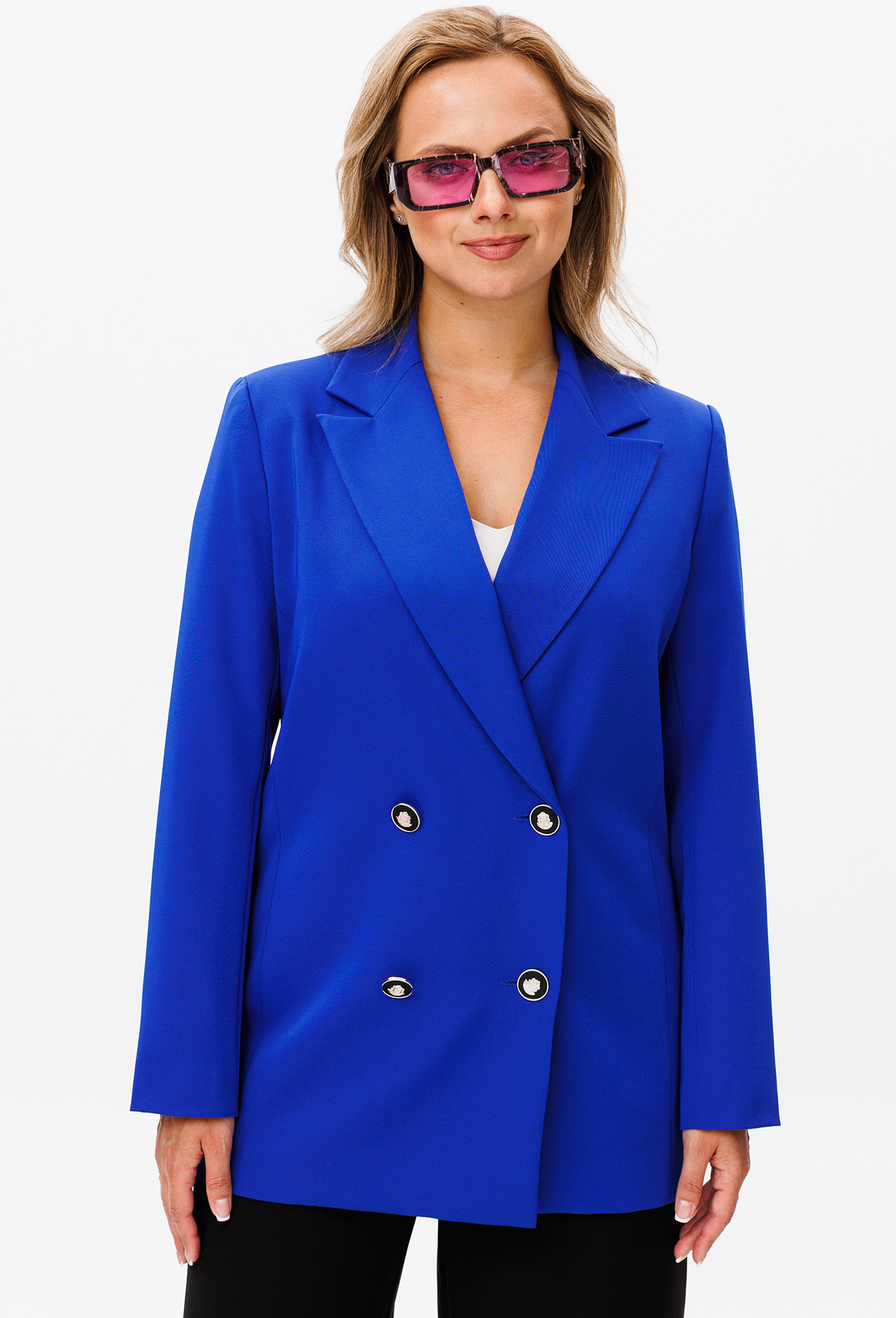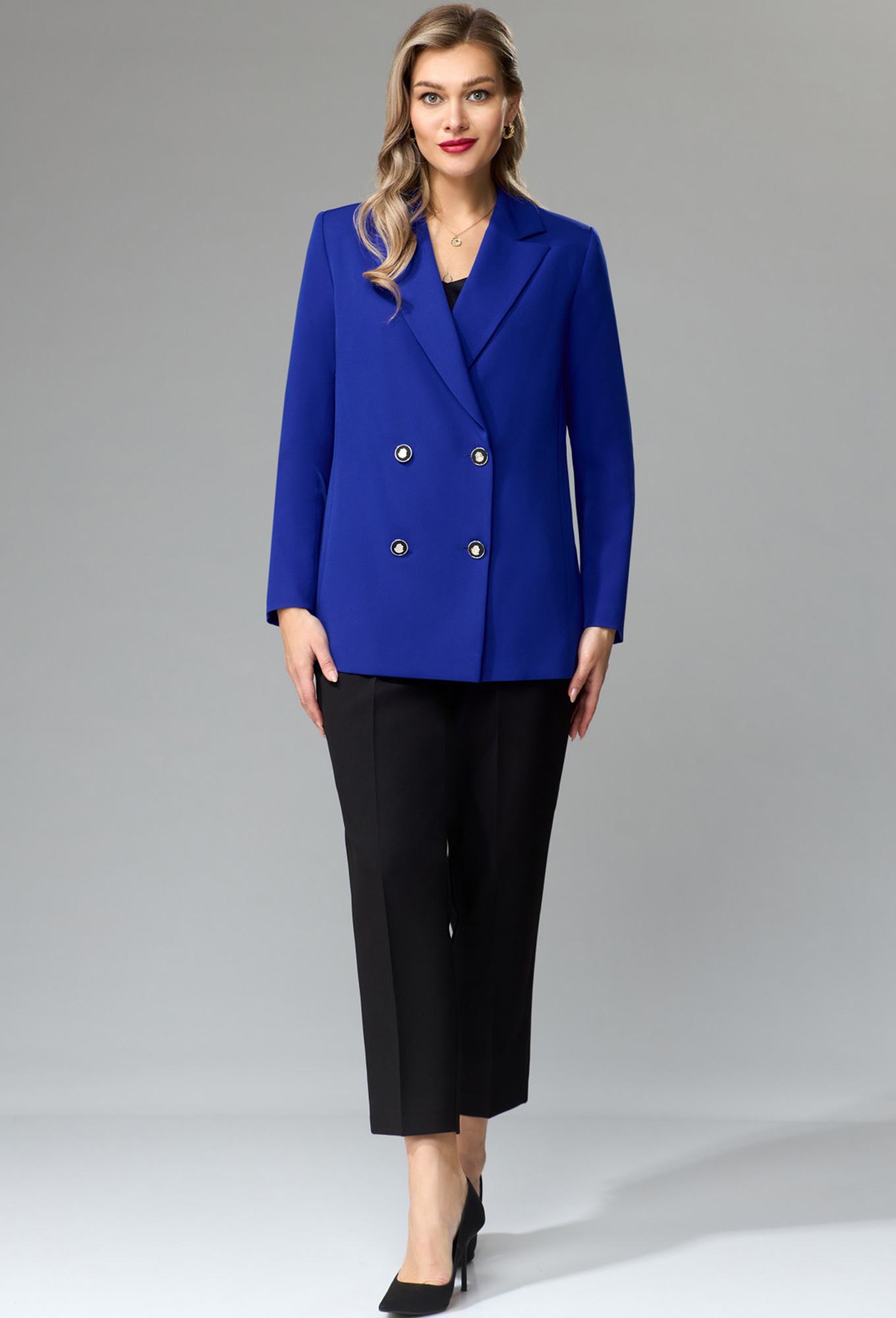 Модель: Гизарт 17551 синий Рост: ..показать164 см (девушка на фото ростом 170см) Сезон: Круглогодичный Тип ткани: Полиэстер 97% , спандекс 3%Жакет свободного силуэта, с двубортной с застежкой на четыре пуговицы. Полочки с отрезными бочками, с нагрудной вытачкой из горловины закрытой лацканом. Спинка со средним швом и двумя отрезными бочками. Рукав двухшовный втачной. Жакет на подкладке.