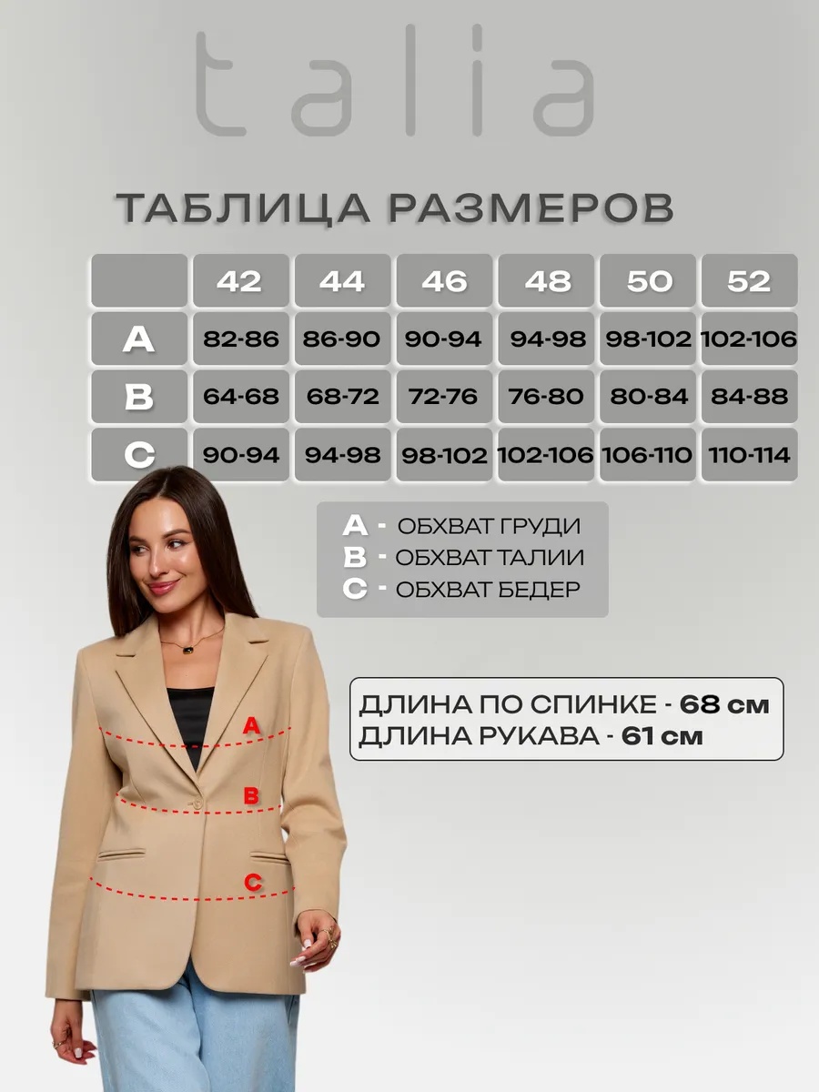 Этот приталенный пиджак из плотного драпового материала станет отличным выбором для женщины или девушки, ценящей стиль и комфорт. Однотонный блейзер выполнен в светлом песочном оттенке, близком к бежевому, что делает его универсальным элементом гардероба. Вискозный подклад и плотная ткань обеспечивает теплую и приятную на ощупь поверхность, идеально подходящую для осеннего и демисезонного периода.
