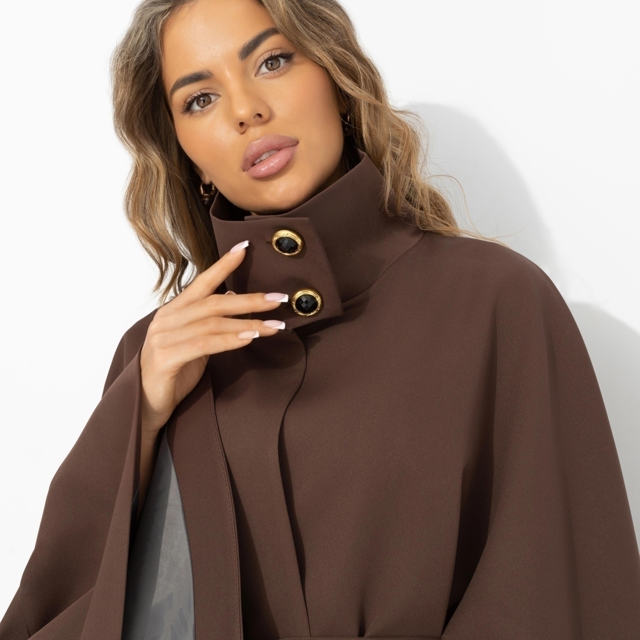 Жакет‑кейп на подкладе, Дикое притяжение (с поясом, брауни)