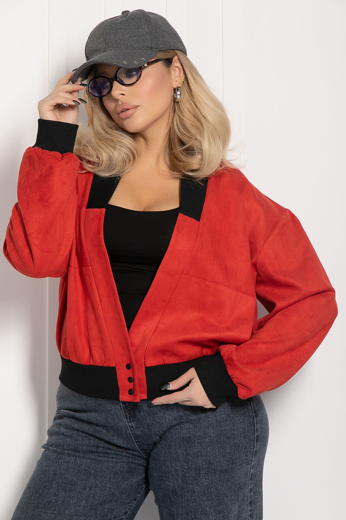 Укороченный бомбер-жакет с накладными карманами для прохладных дней. Глубокий V-образный вырез горловины, который завершается удобной застежкой на кнопки. Идеально подходит для сочетания как с брюками, так и с джинсами, что делает его универсальным выбором для любого случая. Манжеты на рукавах, по низу жакета и горловине выполнены из эластичной трикотажной резинки, что обеспечивает дополнительный комфорт и свободу движений. Втачной рукав со спущенным плечом добавляет жакету современный и расслабленный вид. Этот жакет — отличный выбор для создания стильных и комфортных образов! Низ жакета с хорошей растяжимостью (в замерах указано с растяжением).