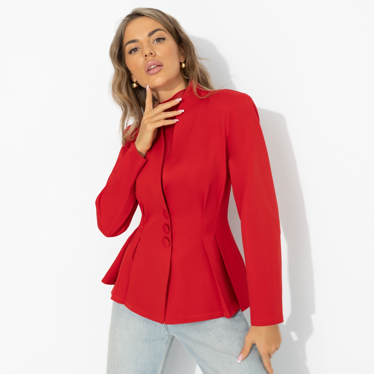 Может, хватит уже скрывать, что ты действительно слишком крута? Этот жакет – про уверенность без извинений и компромиссов. Про выход, когда ты не сомневаешься в себе и не снижаешь громкость. Ты идеальна – и это не вызов, а факт. Эффектная ткань с эластаном держит форму и подчёркивает силуэт. Приталенный крой создаёт собранный максимально женственный образ, а цвет делает жакет самостоятельным акцентом. Сочетается с базовыми брюками, денимом и юбками.