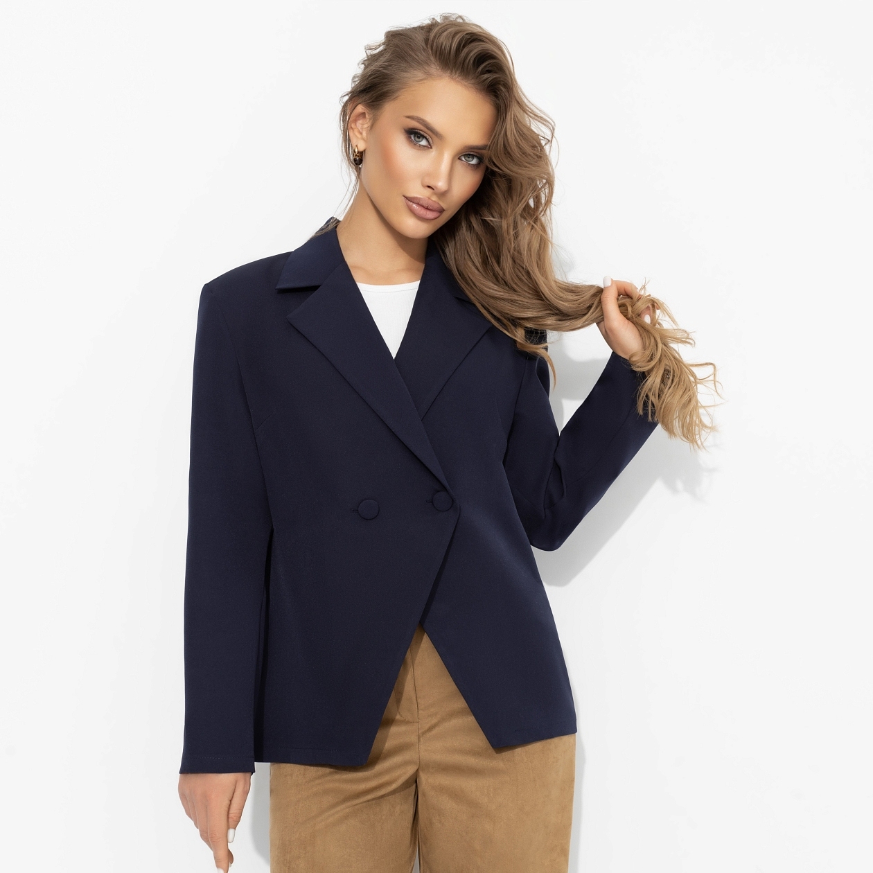 Акцентные плечи, лаконичный двубортный крой и глубокий синий оттенок – так выглядит спокойная, интеллигентная элегантность. Дизайнеры ЧАРУТТИ вдохновлялись образми Жаклин Кеннеди. Носи этот жакет с белым топом и прямыми джинсами или со светлыми брюками и лодочками. Полуприталенный силуэт с двубортной застёжкой на обтяжные пуговицы визуально подчёркивает талию, а классический воротник с лацканами делает модель универсальной для офисных и повседневных образов. Ты великолепна!