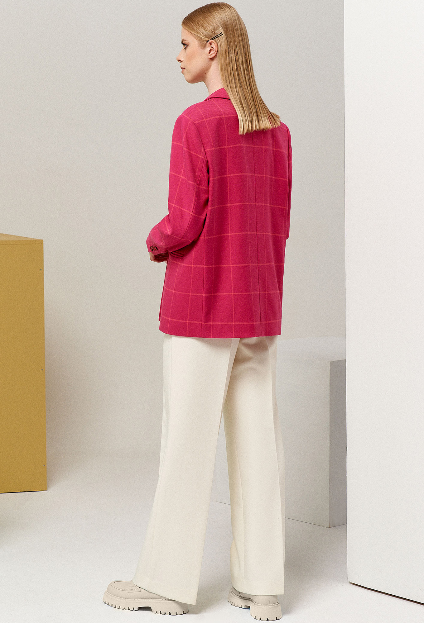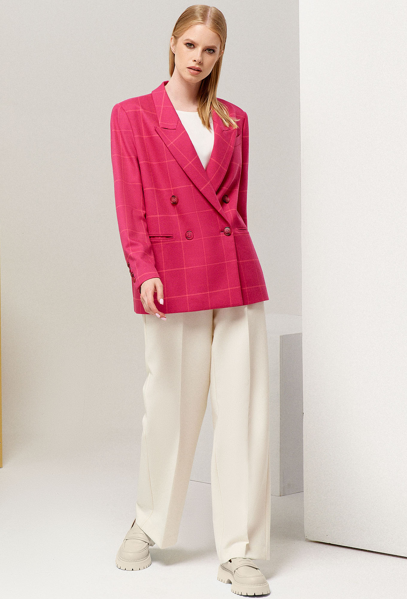 Модель: Панда 119630 розовый Рост..показать: 164 см (девушка на фото ростом 170см) Сезон: Круглогодичный Тип ткани: Жакет- Полиэстер 63%, вискоза 34%, эластан 3%.Подкладка- Полиэстер 55%, вискоза 45%Двубортный женский жакет оверсайз в клетку, имеет достаточно свободный крой и не подразумевает посадку по фигуре.