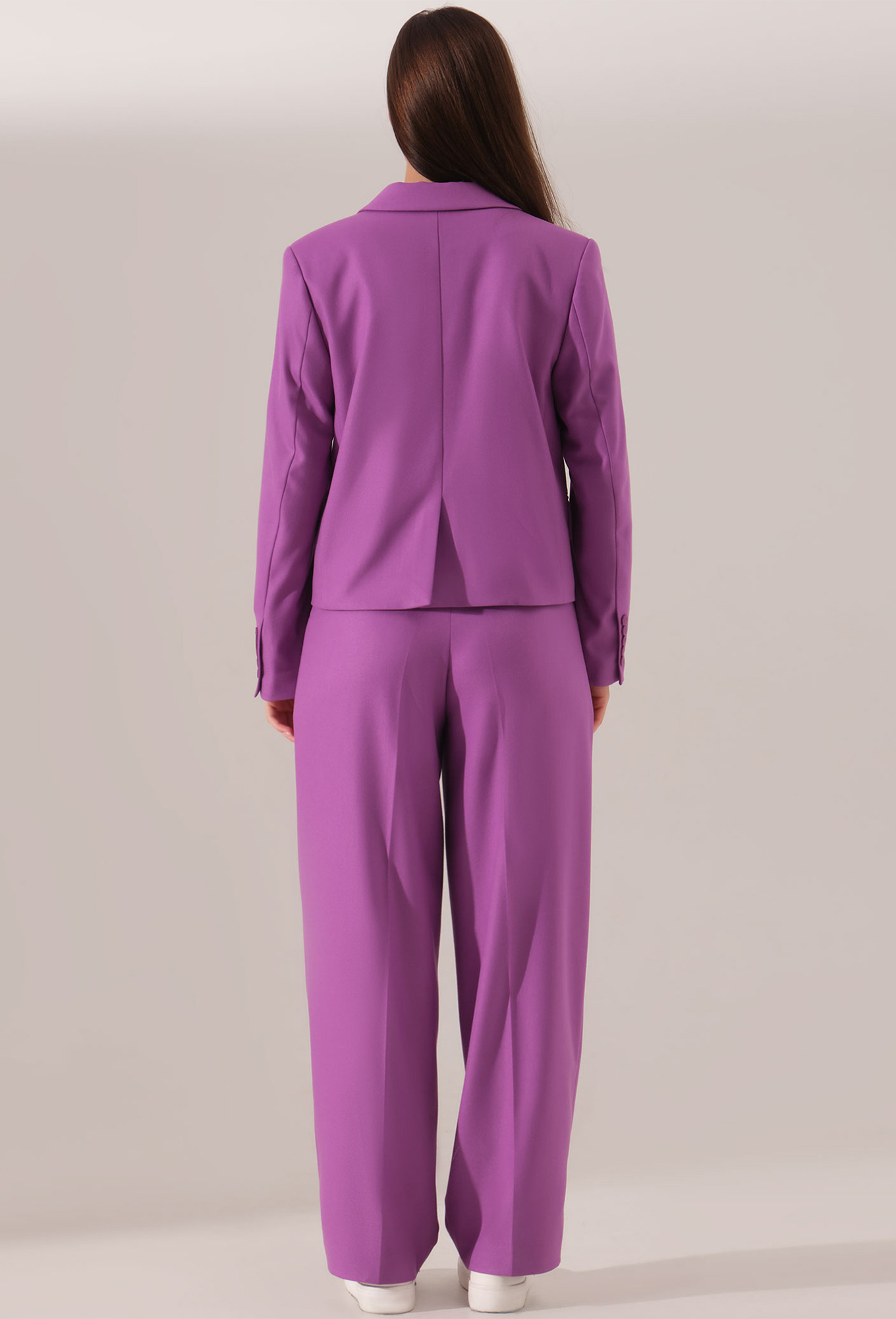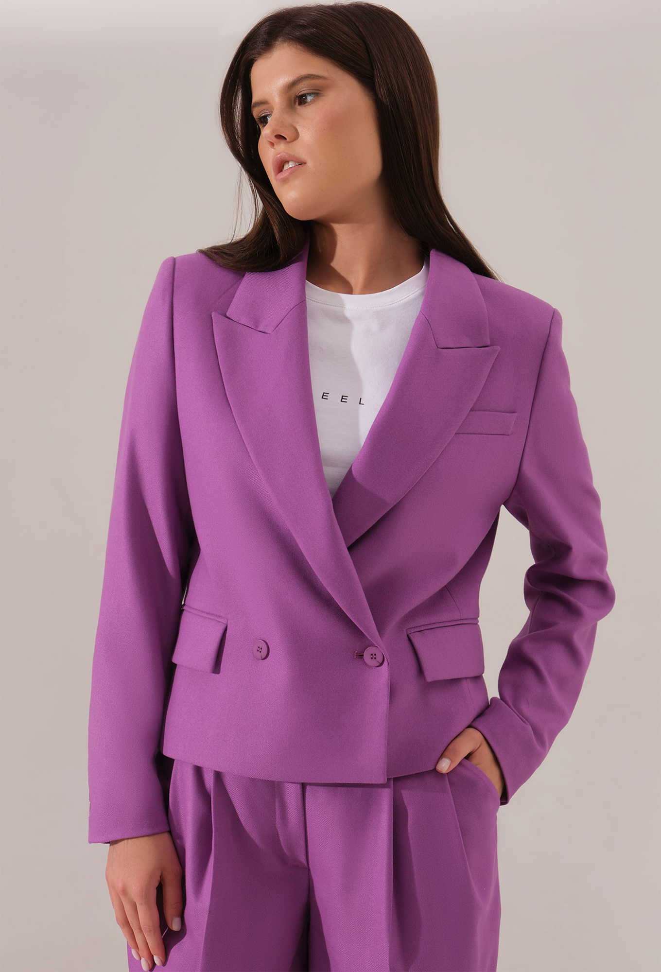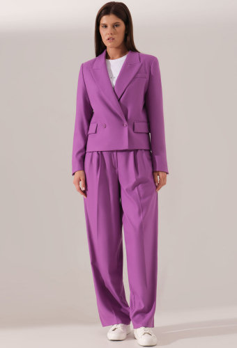 Модель: Панда 162830 фиолетовый Р..показатьост: 164 см (девушка на фото ростом 170см) Сезон: Круглогодичный Тип ткани: Полиэстер 63%, вискоза 34%, эластан 3%Двубортный, укороченный женский жакет.
