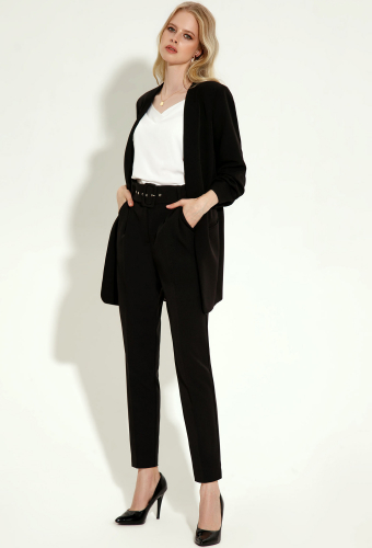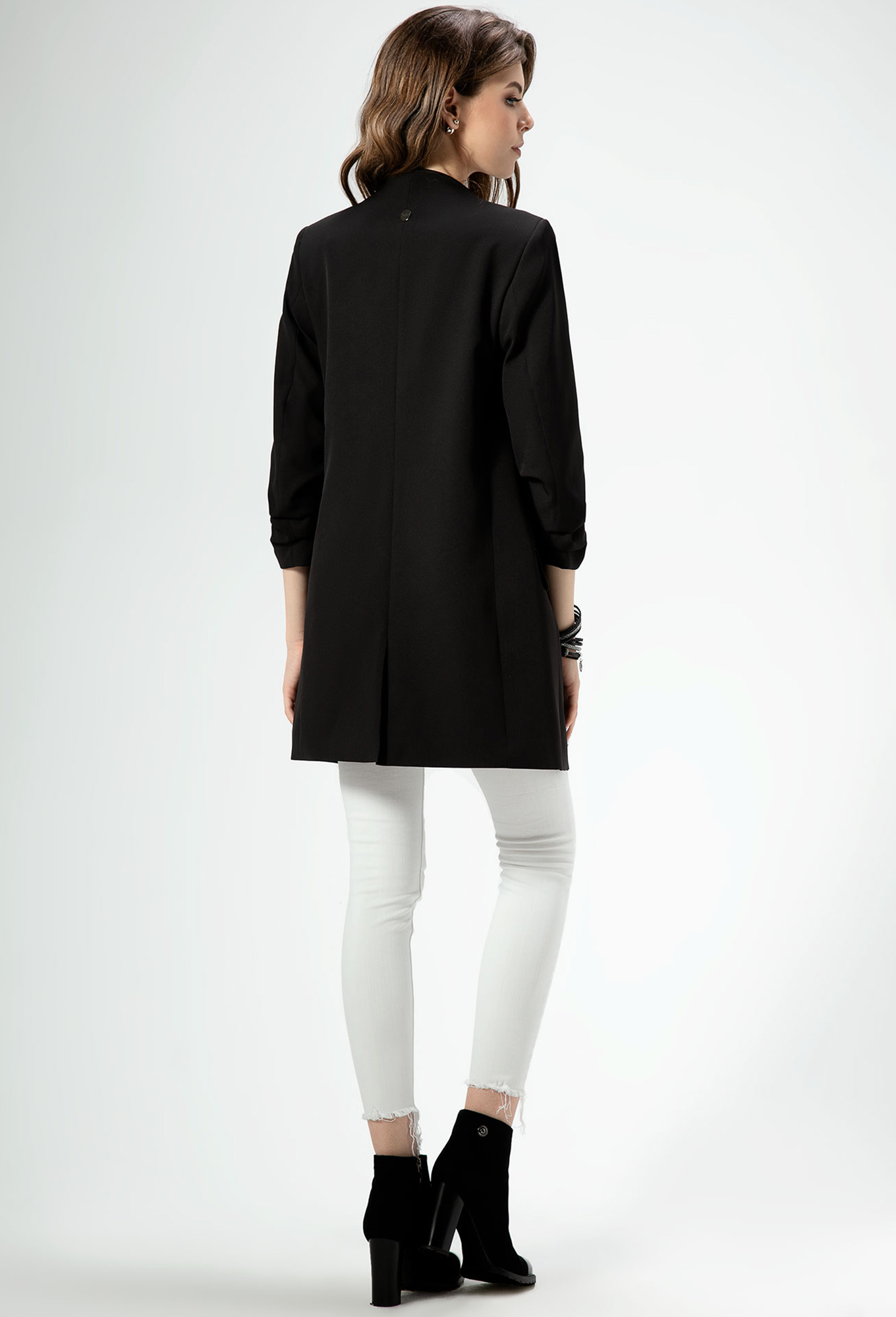 Модель: Панда 453530 черный Рост:..показать 164 см (девушка на фото ростом 170см) Сезон: Круглогодичный Тип ткани: Полиэстер 94%, эластан 6%Стильный модный жакет в стиле "кэжуал". Это повседневный удобный и практичный жакет, который отлично сочетается как с джинсами, так и с брюками. Жакет удлиненный, без застежки, рукава длиной ниже локтя. По переду имеются карманы. Спинка со средним швом, который заканчивается шлицей. Жакет на подкладки.