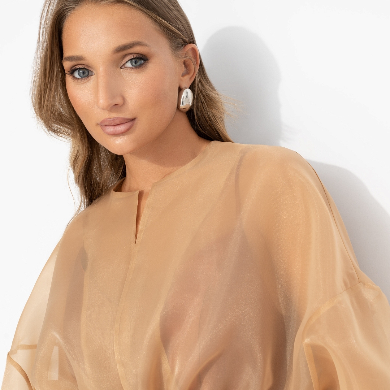 Она обожала превращать обычный поход за покупками в маленький выход в свет. Сегодня её главным союзником стал жакет ЧАРУТТИ цвета теплого песка. Его свободный крой словно окутывал её невесомой дымкой. Полупрозрачная ткань позволяла угадывать изящные линии топа, добавляя образу загадочности. Для неё наряжаться – это вид искусства, а жакет ЧАРУТТИ стал вдохновляющим шедевром. Жакет объемного кроя. Есть регулируемая кулиска на талии. Линия плеча спущена. Есть шнуровка по манжетам. Материал изделия слегка просвечивает.