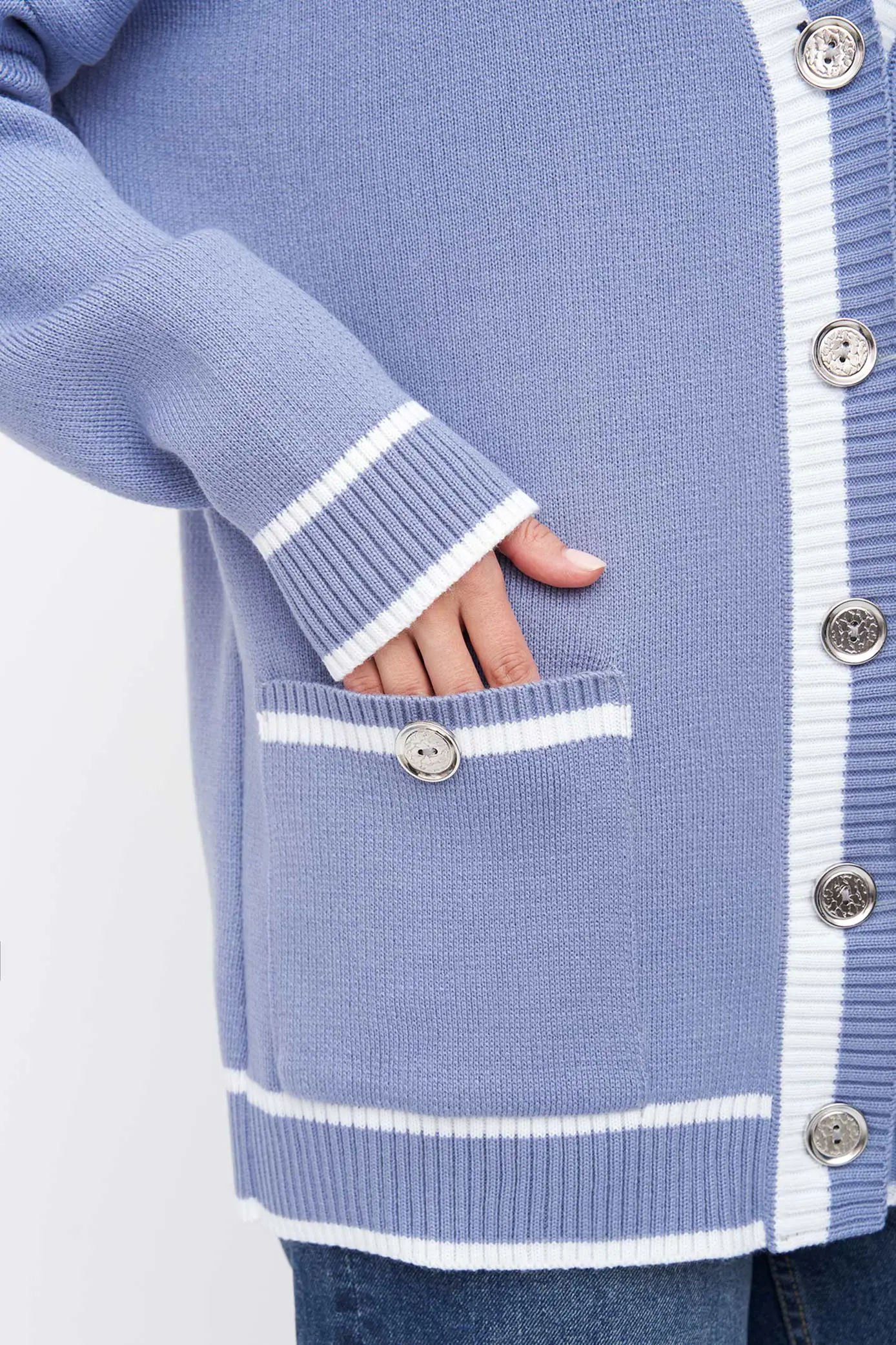 Вязаный жакет в стиле оверсайз с V-образным вырезом горловины, спущенным плечом и рукавом полной длины. Жакет выполнен из качественной пряжи с составом 30% шерсть/70% ПАН, Базовый женский жакет на пуговицах обязательно найдет место в Вашем гардеробе. Жакет подходит для любого времени года. Женский жакет можно сочетать в различных стилях, от классических до современных, для женщин и девушек с любым типом фигуры св.голубой