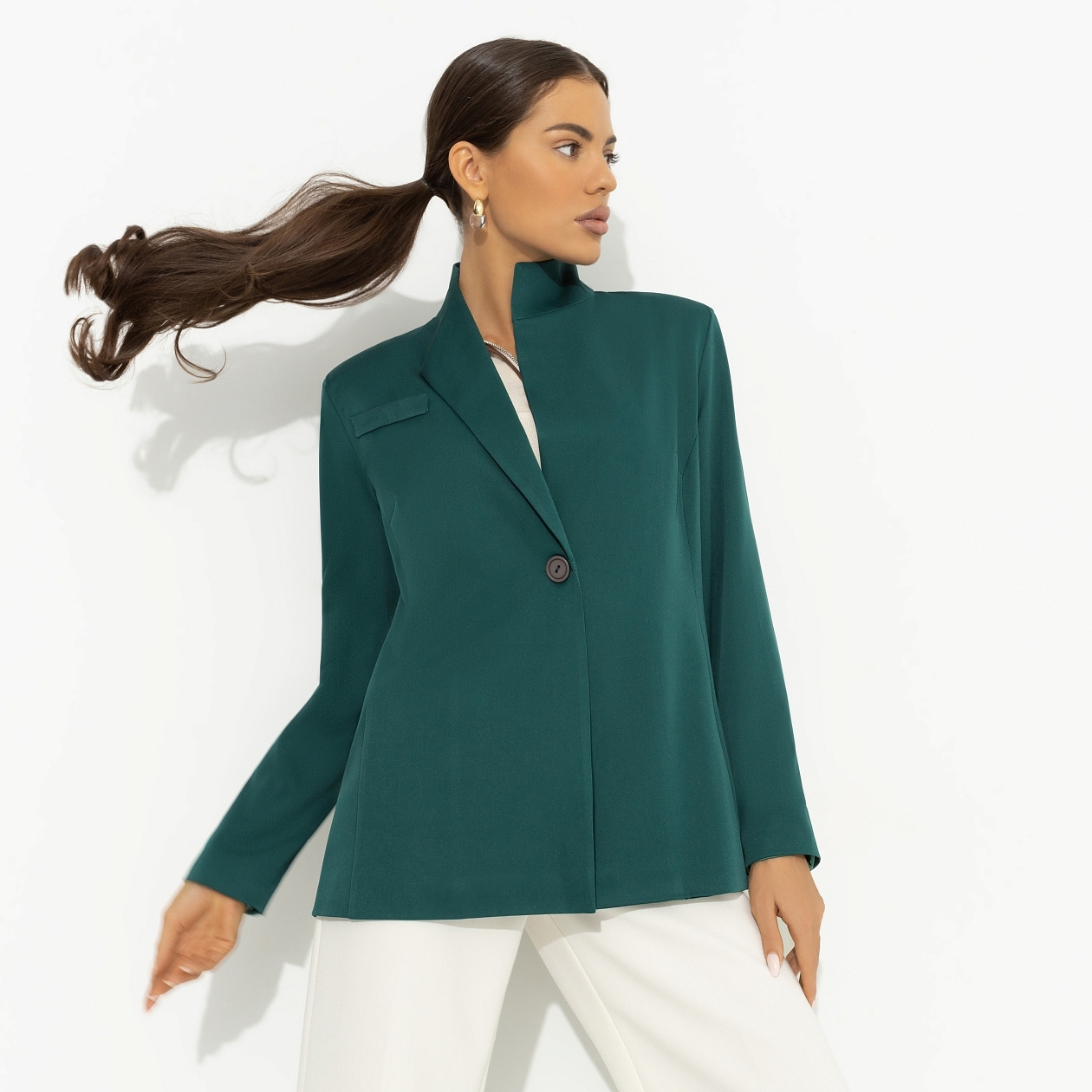 Жакет с асимметричным воротником, Дерзкий силуэт (зелёный)