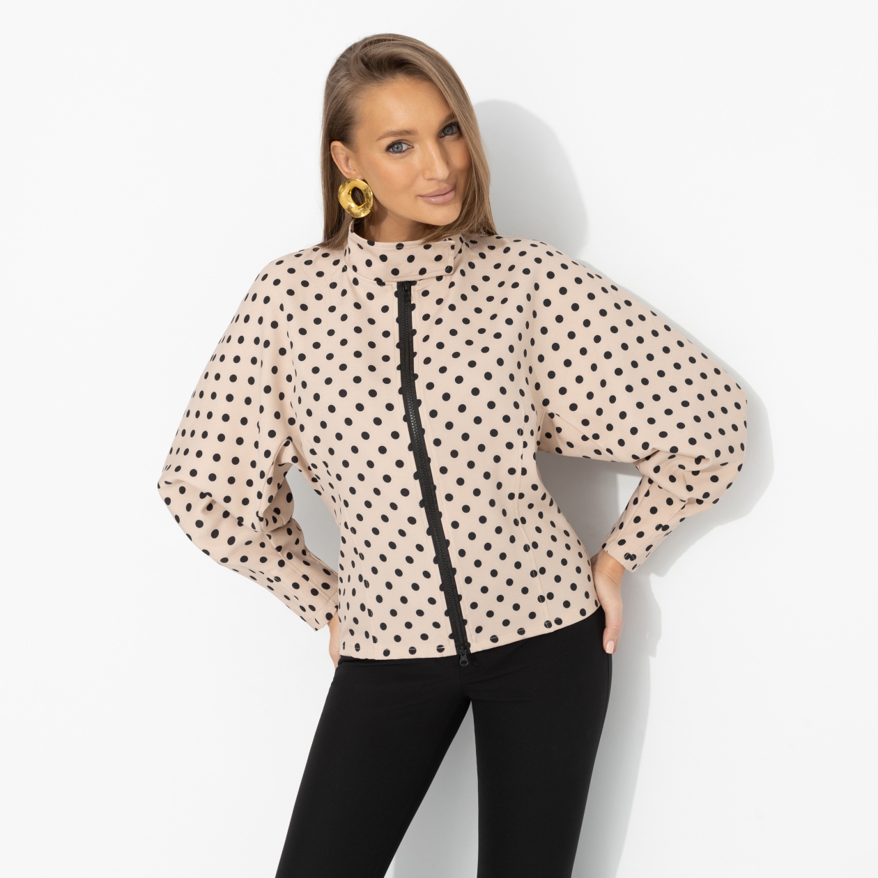 Она знала: её сильная сторона – не громкость, а стиль. Жакет в контрастный горох сначала кажется игривым, но дизайнерские рукава добавляют характер и драму. Один жест – и акценты расставлены. В нём можно улыбаться мягко, а решения принимать жёстко. И пусть гадают, что именно делает вас такой уверенной.