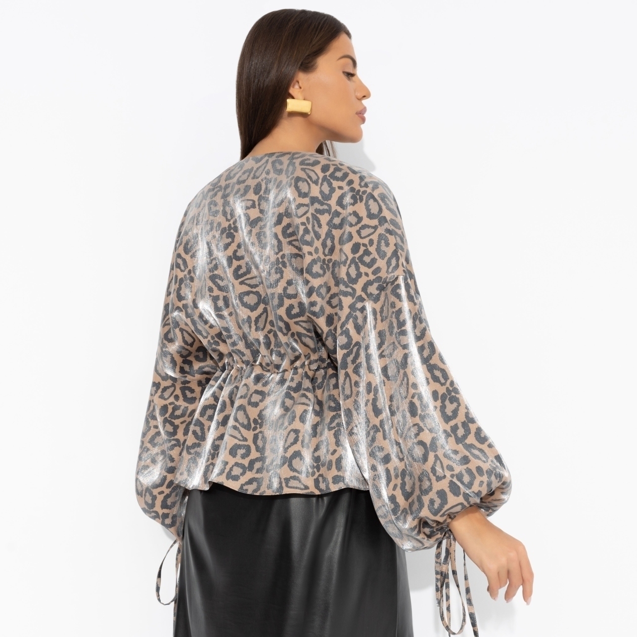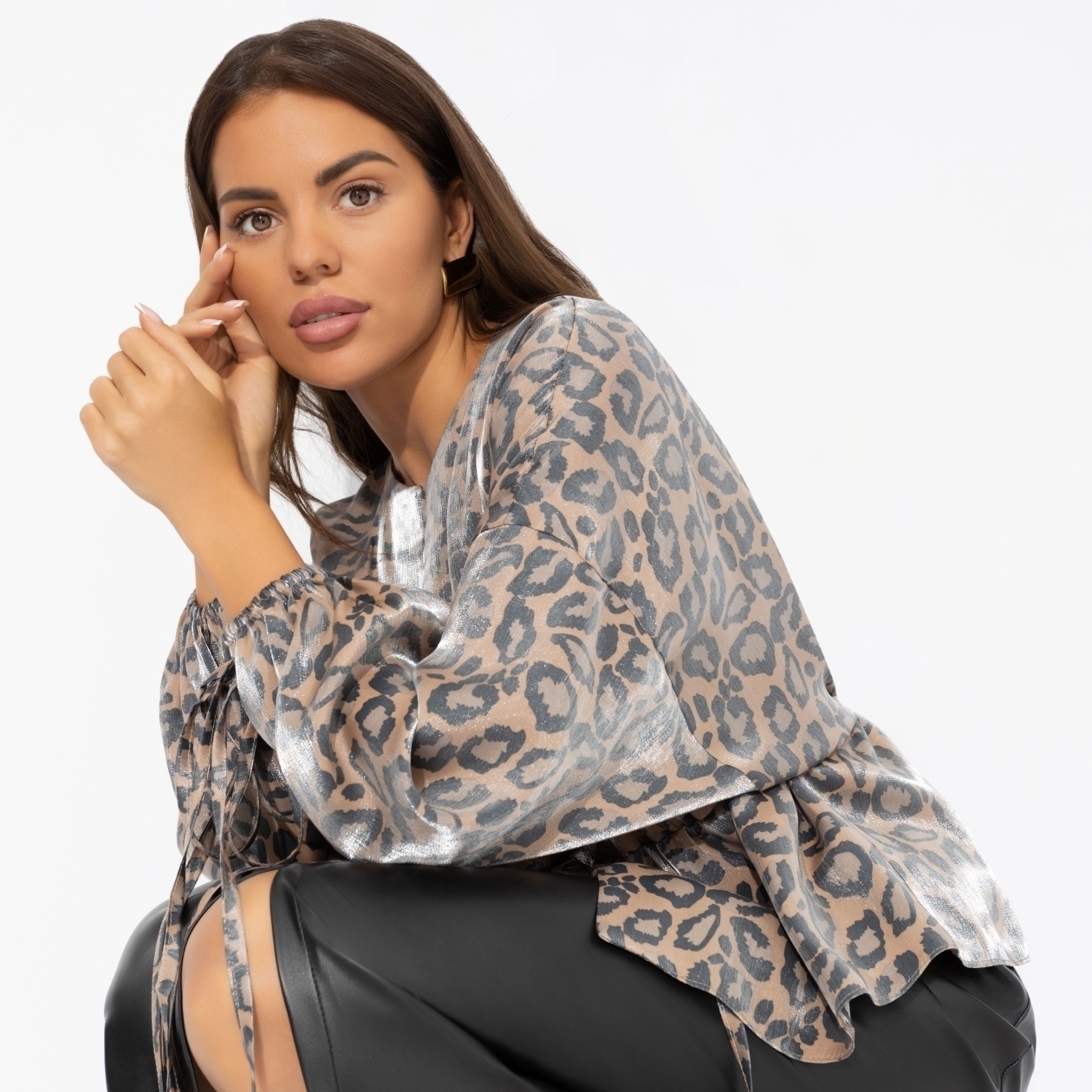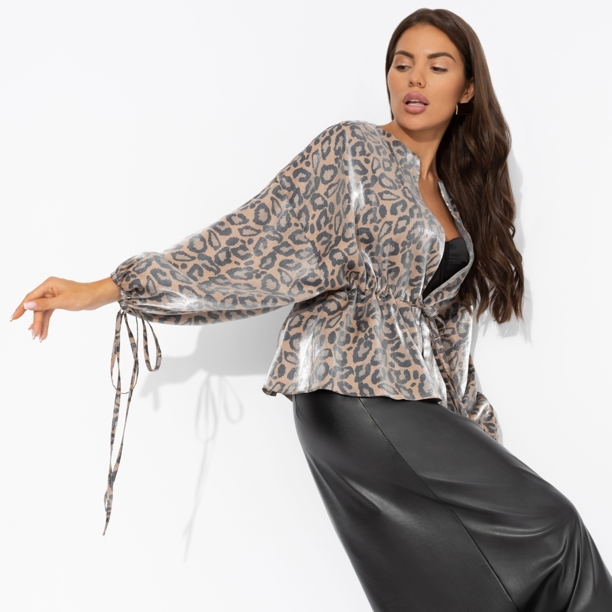 Кто сказал, что леопард – это перебор? В органзе он звучит так утончённо, что даже офисные стены завидуют. Вершина восхищения? О да. Жакет на завязках. Линия плеча спущена. Посадка свободная. Материал изделия с блеском.