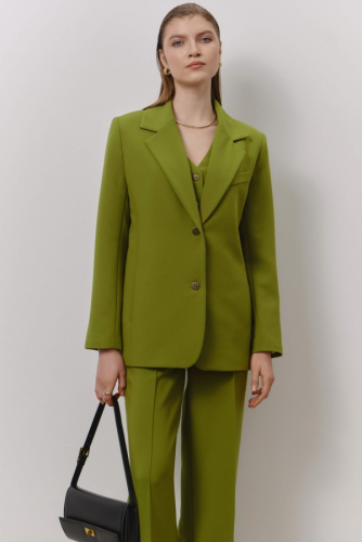 Жакет-кимоно из смесового льна. Модель прямого силуэта со спущенным плечом на поясе. По переду запах. Рукав длинный с декоративной притачной манжетой. Накладные карманы. Пояс в комплекте.