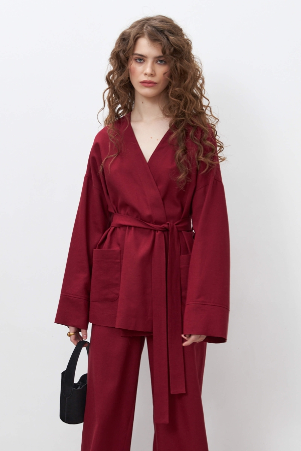 Комфортный топ из смесового льна. Изделие свободное, по низу изделия отрезная манжета. По спинке декоративный вырез на запахе.