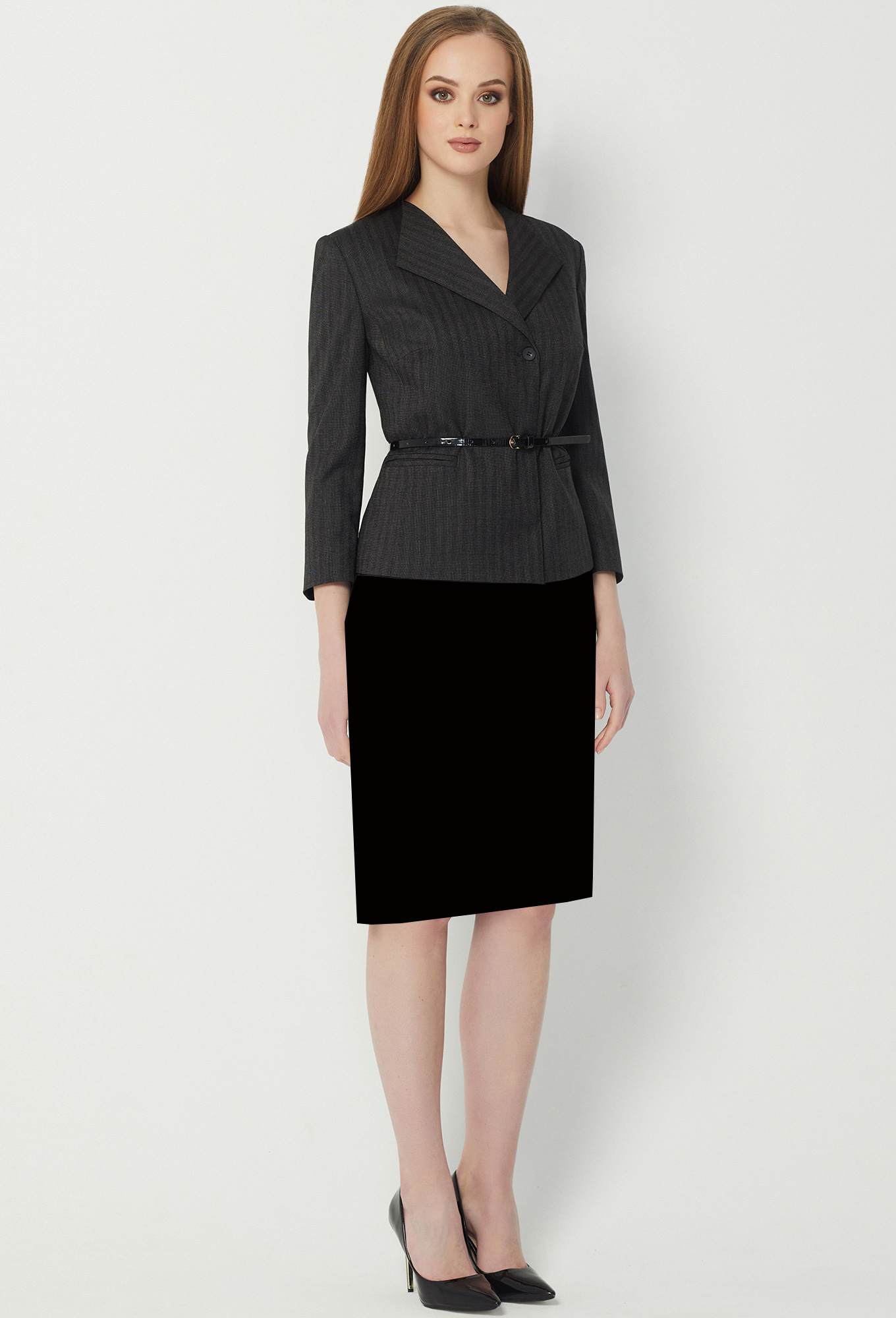 Модель: Солеи 3488 т.серый Рост: ..показать164 см (девушка на фото 170см) Сезон: Круглогодичный Тип ткани: Полиэстер- 65%, Вискоза- 32% , Эластан- 3%Двубортный жакет полуприлегающего силуэта с застежкой на две кнопки и две потайные петли и пуговицы. Без воротника, с двумя широкими лацканами. Перед со смещенными рельефами, нагрудными вытачками и горизонтальными карманами с рамкой. Спинка со средним швом, двумя рельефами и двумя вытачками. Рукава втачные двухшовные. Изделие на подкладке. В качестве декора предложен ремень.
