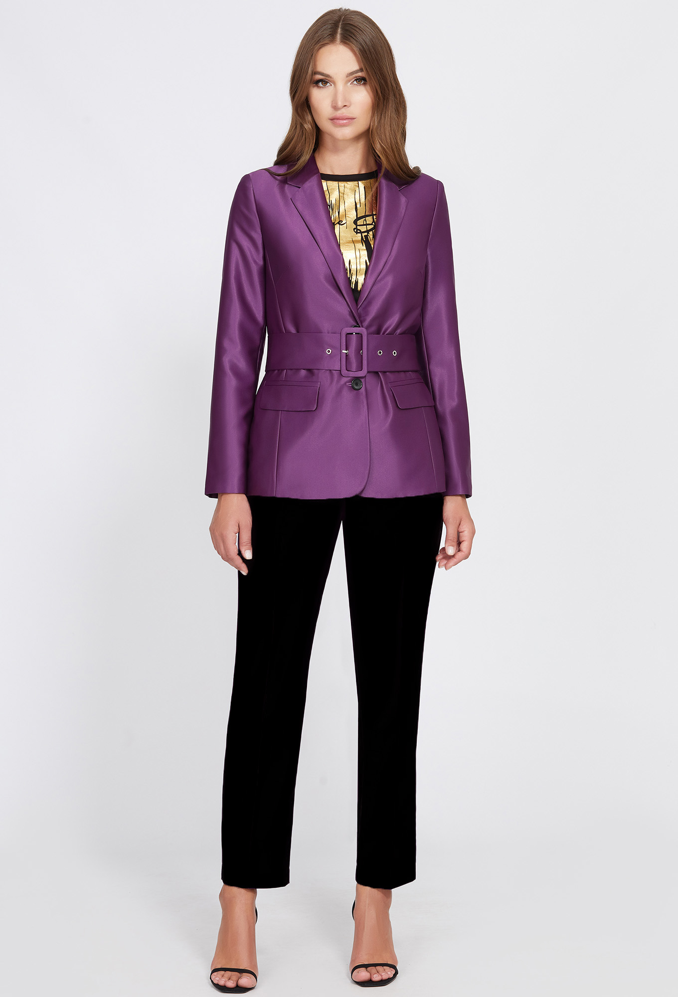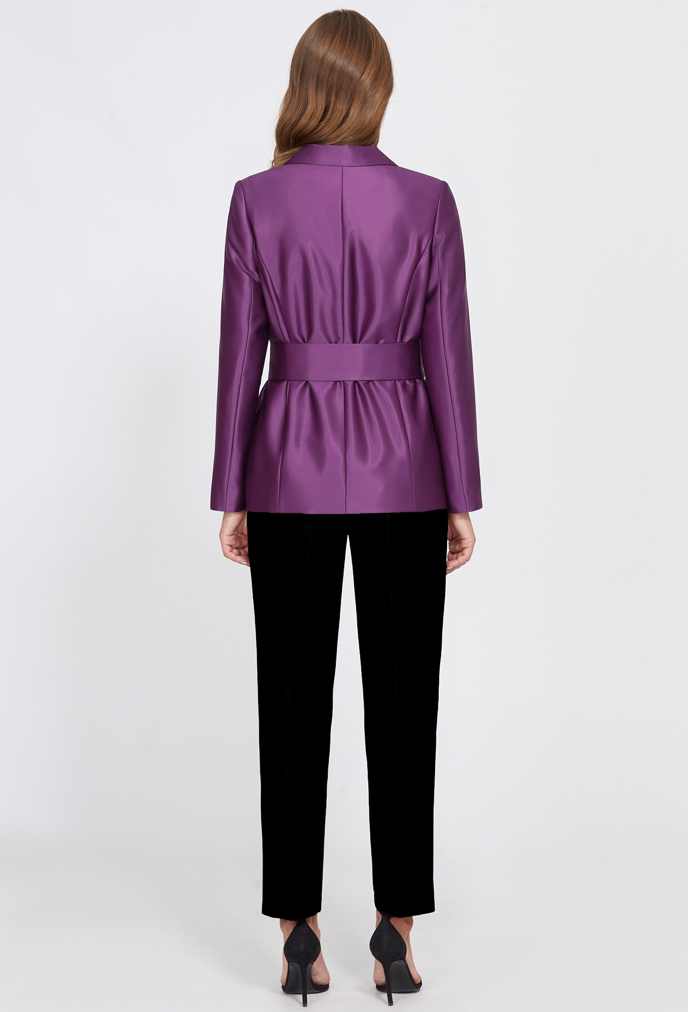 Модель: Солеи 3830 фиолетовый Рос..показатьт: 164 см (девушка на фото 170см) Сезон: Круглогодичный Тип ткани: 100% полиэстерЖакет полуприлегающего силуэта с центрально-бортовой застёжкой на две петли-пуговицы. Перед с горизонтальными параллельными клапанами и рамками. Рукава втачные двухшовные. Воротник отложной с лацканами. На подкладке. Дополняется широким поясом с пряжкой из основной ткани.