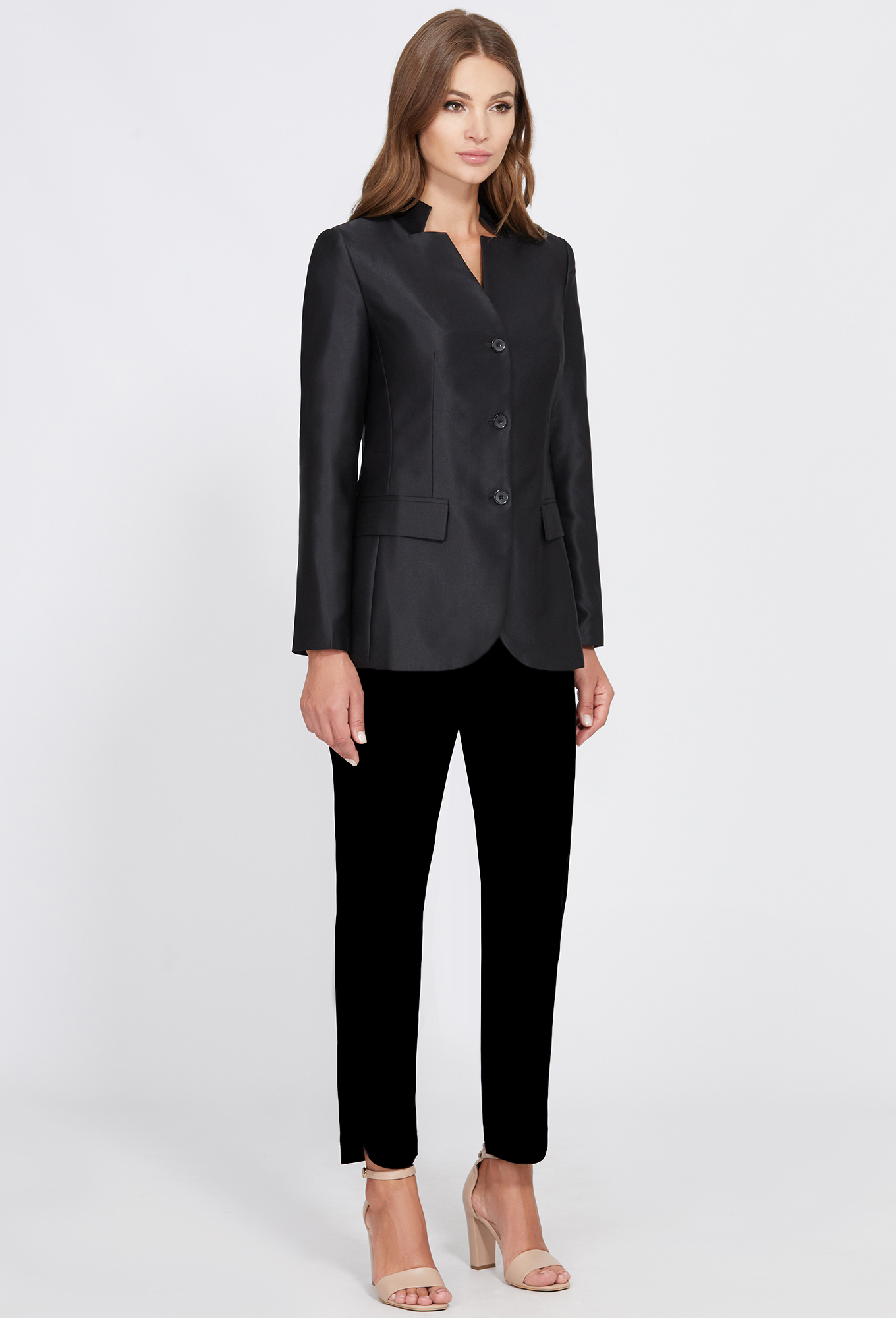 Модель: Солеи 4489 черный Рост: 1..показать64 см (девушка на фото 170см) Сезон: Круглогодичный Тип ткани: 100% полиэстерУдобный однобортный жакет полуприлегающего силуэта выполнен из приятной на ощупь ткани. Модель станет удачным вложением в гардероб: днём она будет уместно смотреться в офисе, а вечером в ней можно отправиться на светское мероприятие. Перед с фигурным вырезом горловины, с застёжкой на петли-пуговицы и двумя функциональными карманами с рамками. Рукава втачные двушовные. Воротник-стойка. На подкладке.