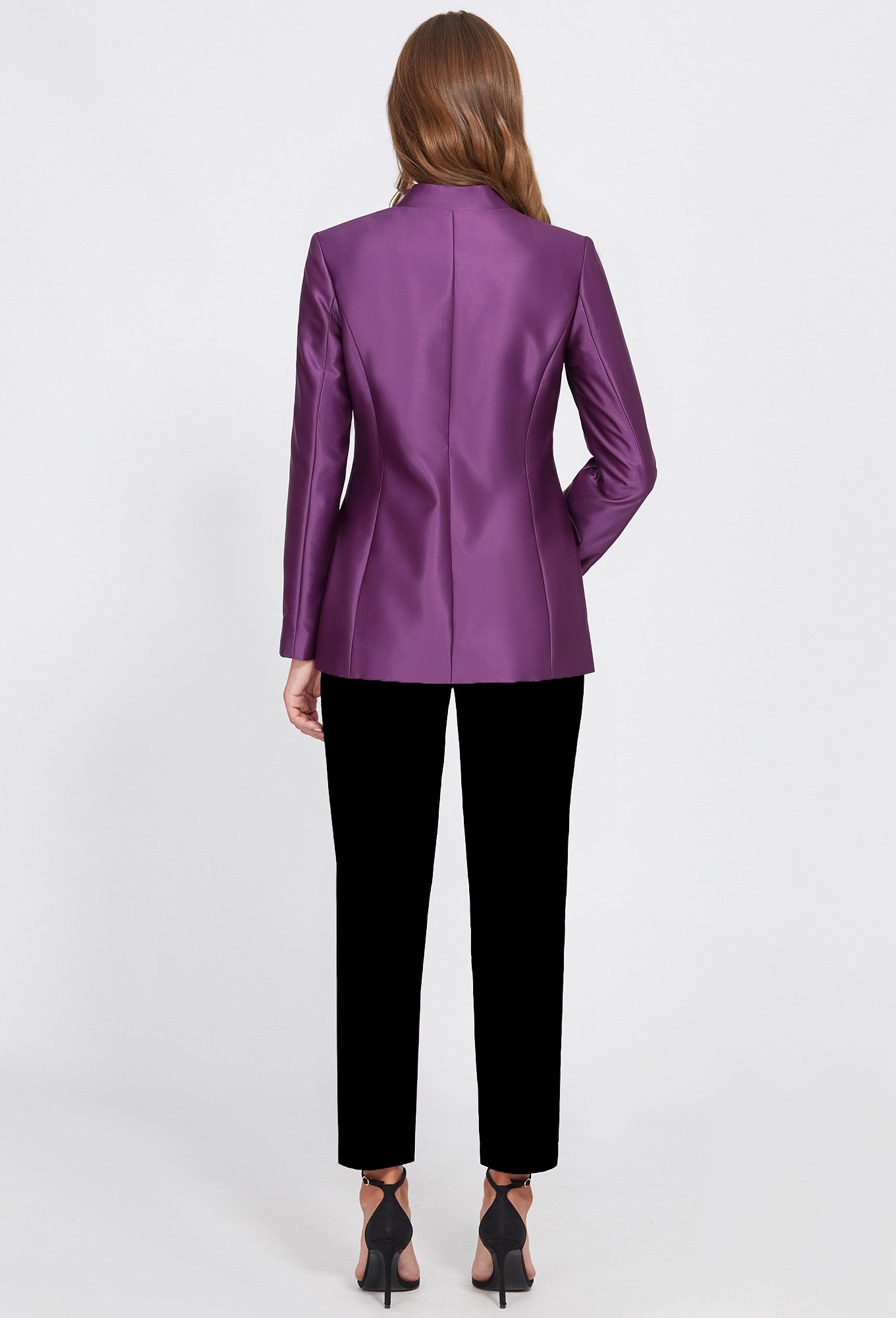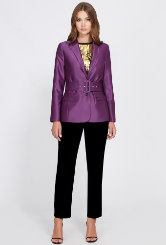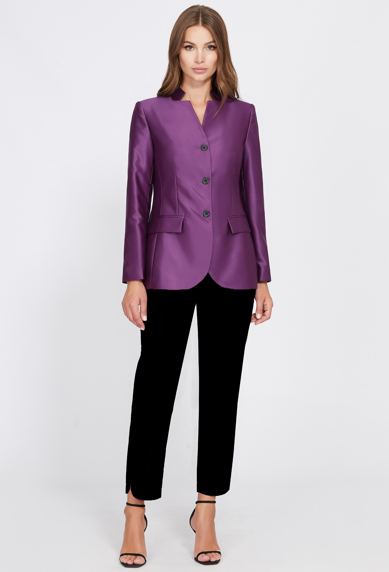 Модель: Солеи 4489 фиолетовый Рос..показатьт: 164 см (девушка на фото 170см) Сезон: Круглогодичный Тип ткани: 100% полиэстерУдобный однобортный жакет полуприлегающего силуэта выполнен из приятной на ощупь ткани. Модель станет удачным вложением в гардероб: днём она будет уместно смотреться в офисе, а вечером в ней можно отправиться на светское мероприятие. Перед с фигурным вырезом горловины, с застёжкой на петли-пуговицы и двумя функциональными карманами с рамками. Рукава втачные двушовные. Воротник-стойка. На подкладке.