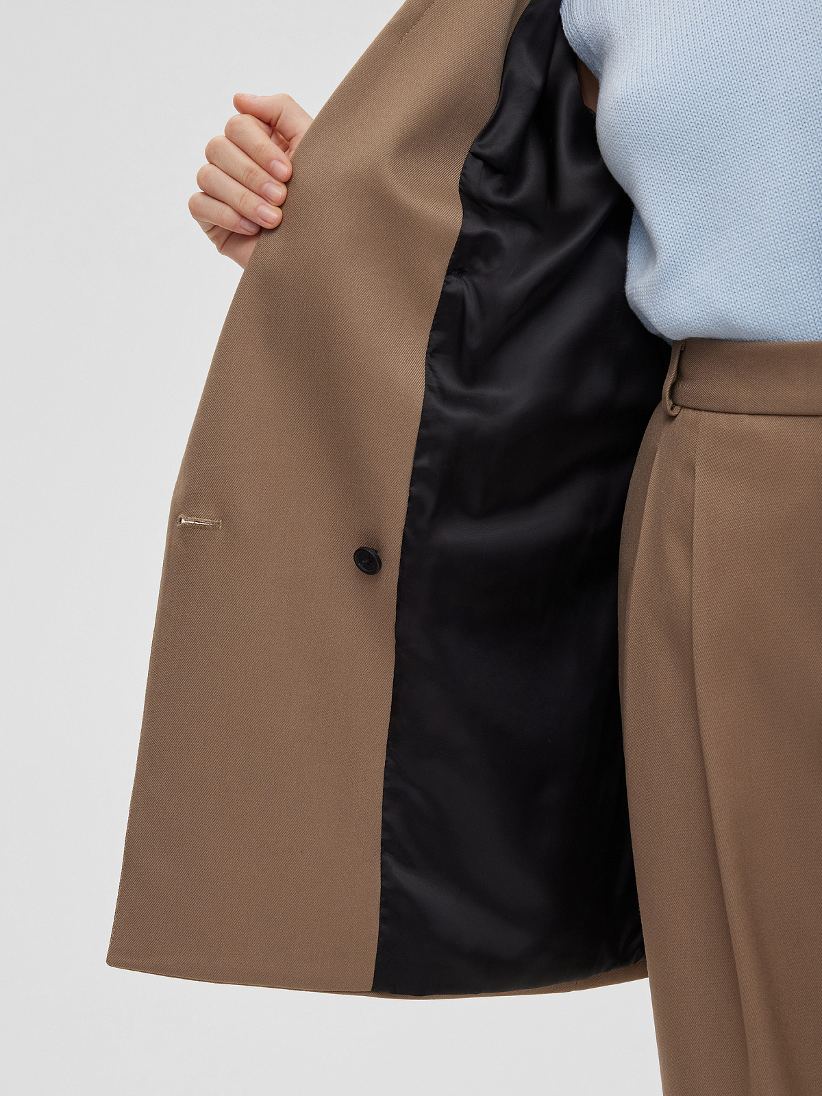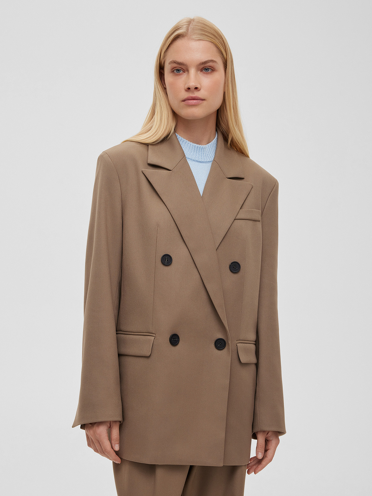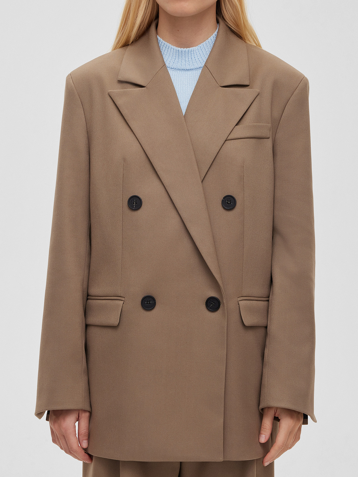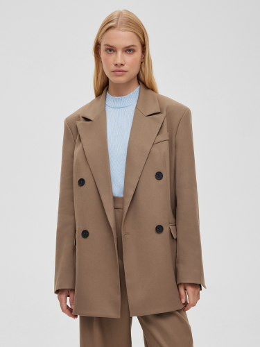 Жакет свободного кроя двубортный, светлый хаки