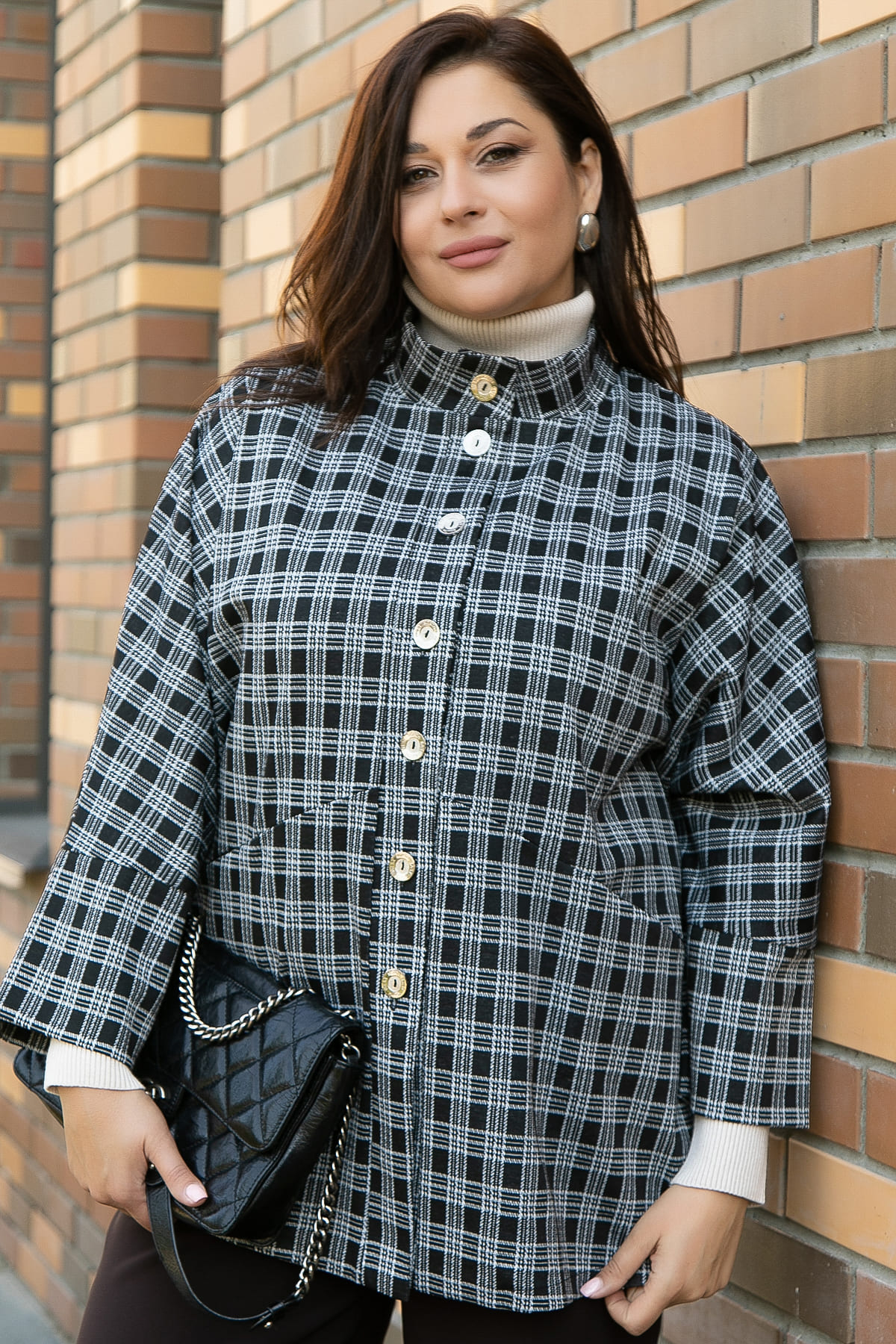 Жакет свободного кроя — это стильный и универсальный элемент гардероба, который поможет создать множество образов. Воротник-стойка плавно переходит в планку на пуговицах, что придаёт изделию элегантный и современный вид. Цельнокроеные рукава и манжеты, которые можно отгибать, позволяют экспериментировать с образом. Удобные карманы добавляют функциональности, делая пальто практичным выбором для повседневной носки. Этот жакет станет незаменимым элементом вашего гардероба, сочетая в себе комфорт и стиль.