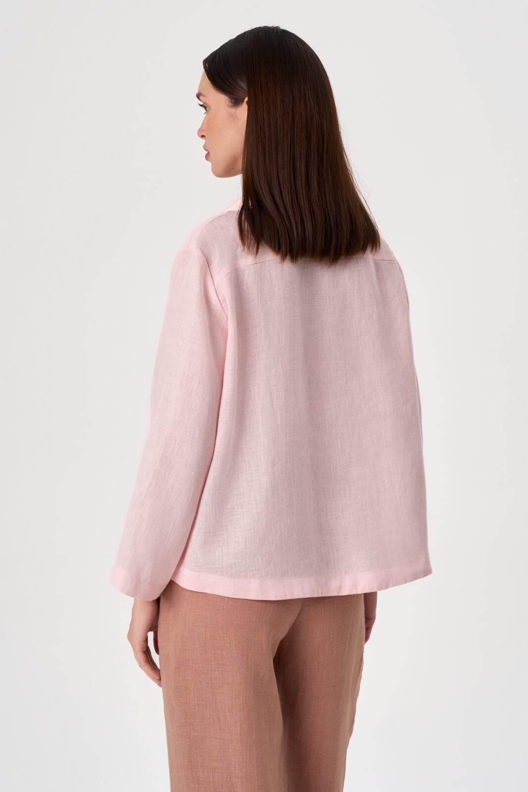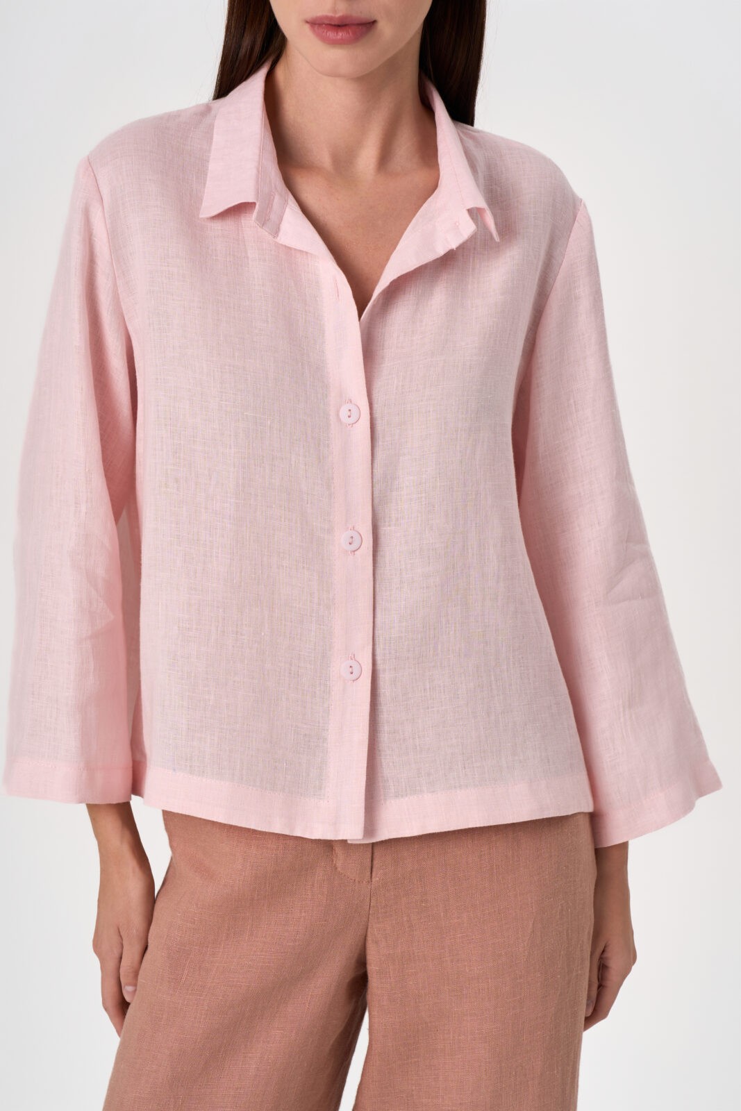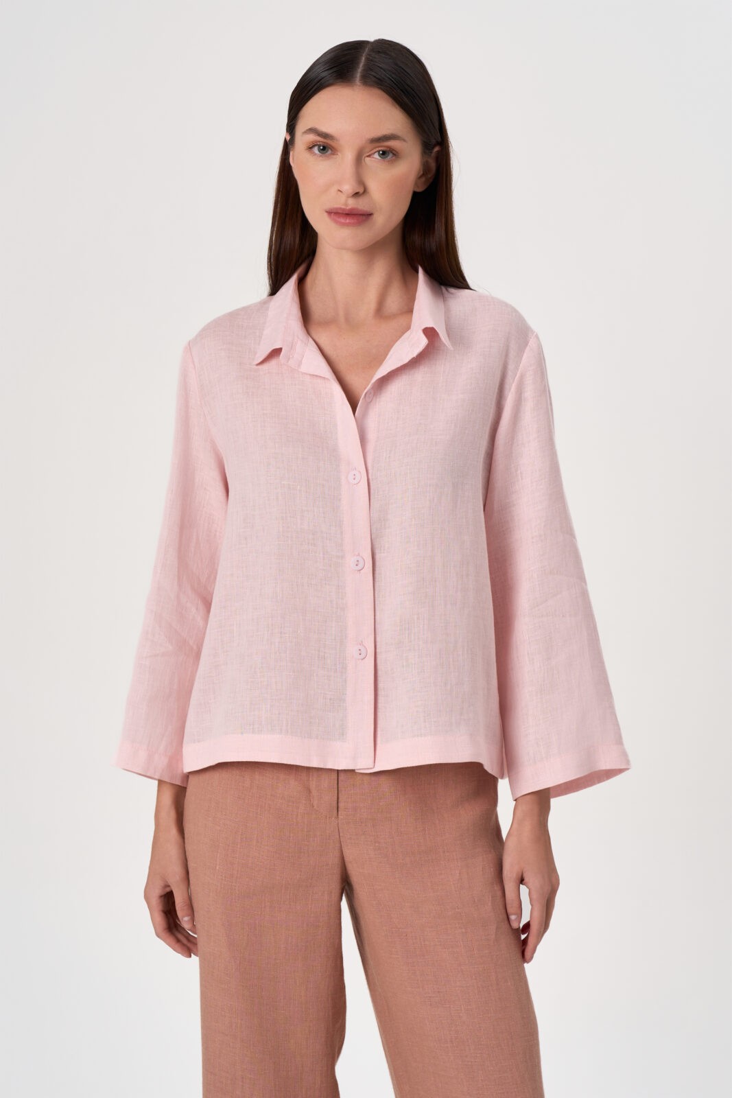 Блузка женская укороченная на кокетке. Рукав втачной длинный. Застежка центральная на пуговицы. Воротник рубашечный на стойке.