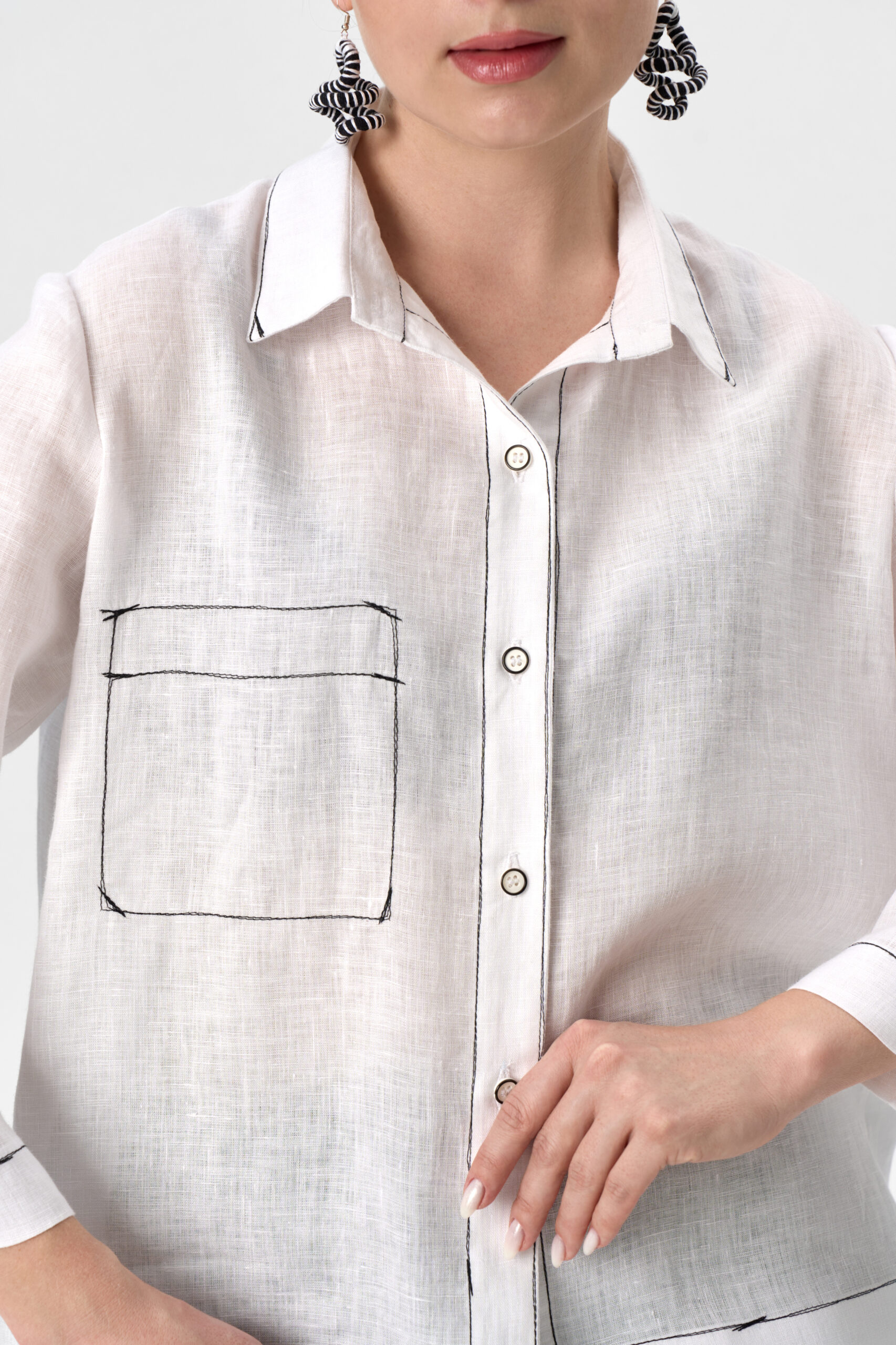 Блузка женская укороченная на кокетке. Рукав втачной длинный. Застежка центральная на пуговицы. Воротник рубашечный на стойке.