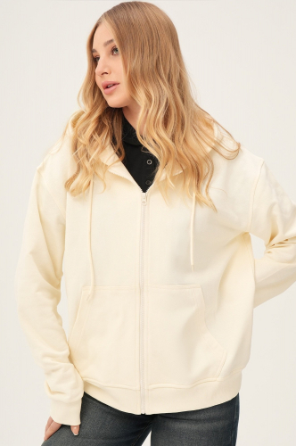 Свободный крой оверсайз со спущенным плечом создаёт расслабленный силуэт. Трикотажный демисезонный свитшот для женщин идеально подходит для домашнего отдыха, прогулок или встреч на свежем воздухе в осенний или весенний день.