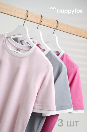 — комплект включает 3 футболки из натурального 100% хлопка: светло-серого, ярко-розового и светло-розового цвета;