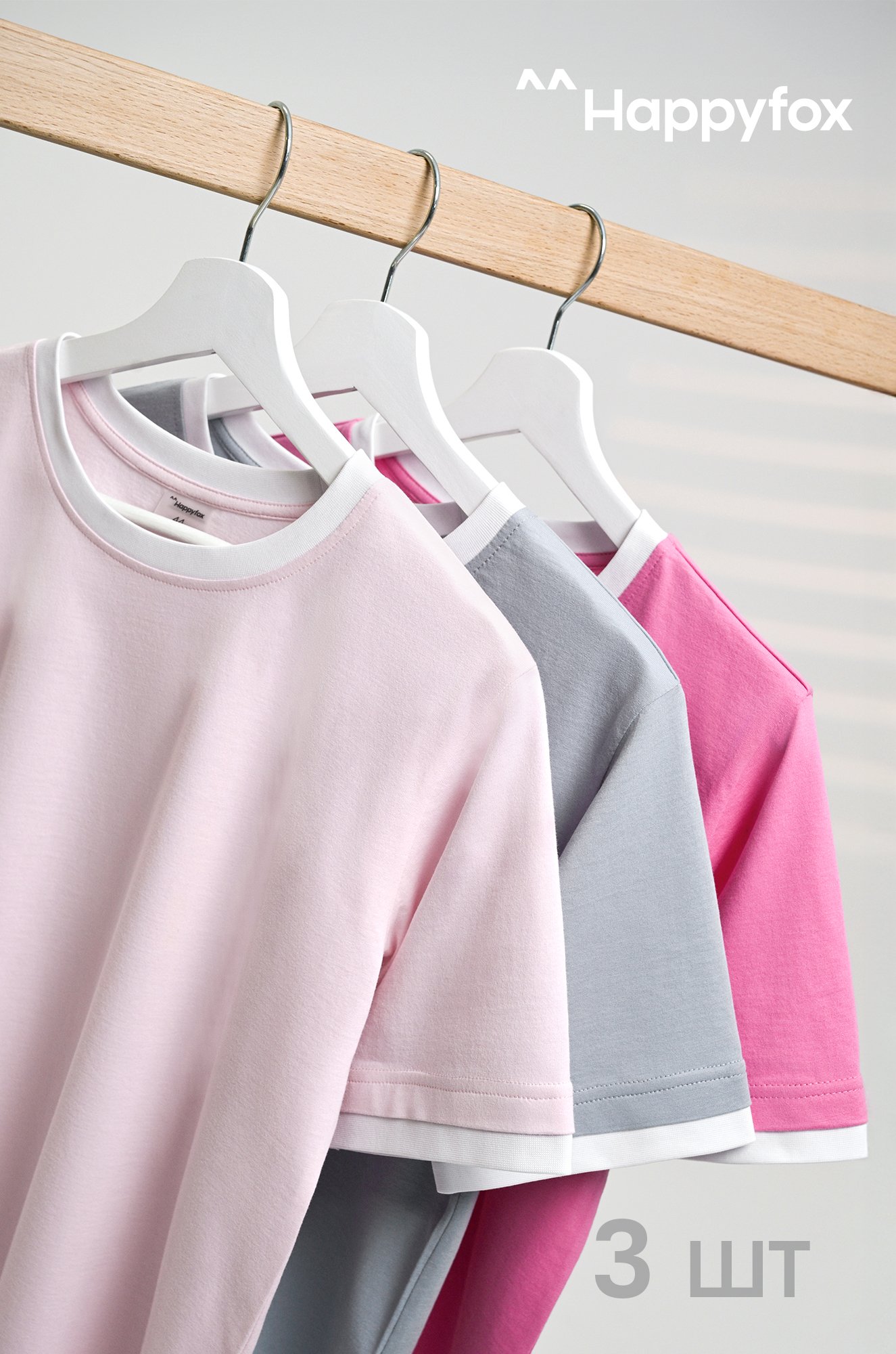 Женская базовая футболка из хлопка с кантом 3 шт. Happyfox