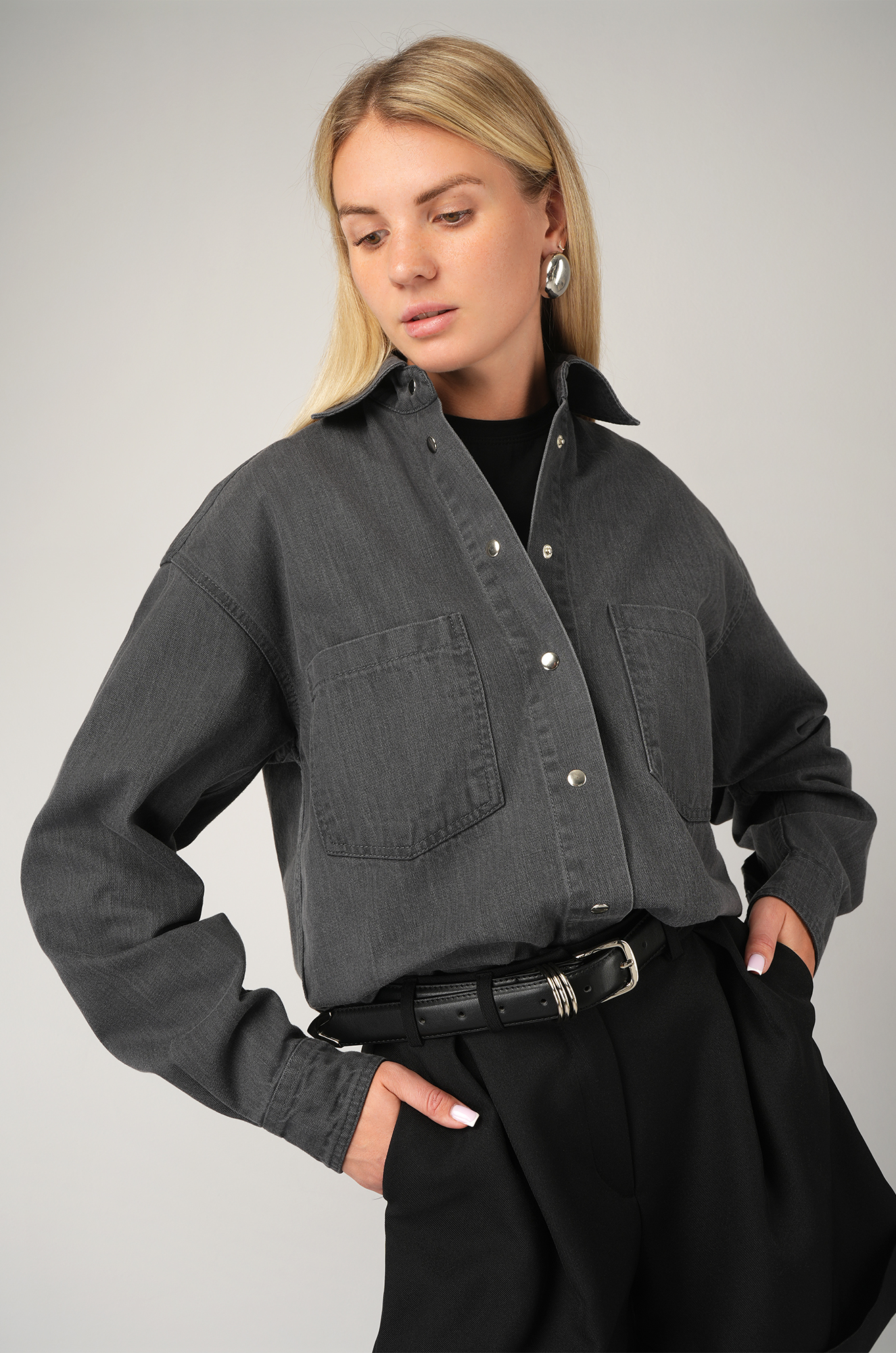 Женская джинсовая рубашка оверсайз — идеальный выбор для стильной осенней капсулы. Серая рубашка выполнена из плотного хлопкового денима, который дарит комфорт и долговечность.