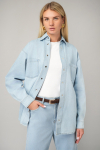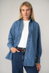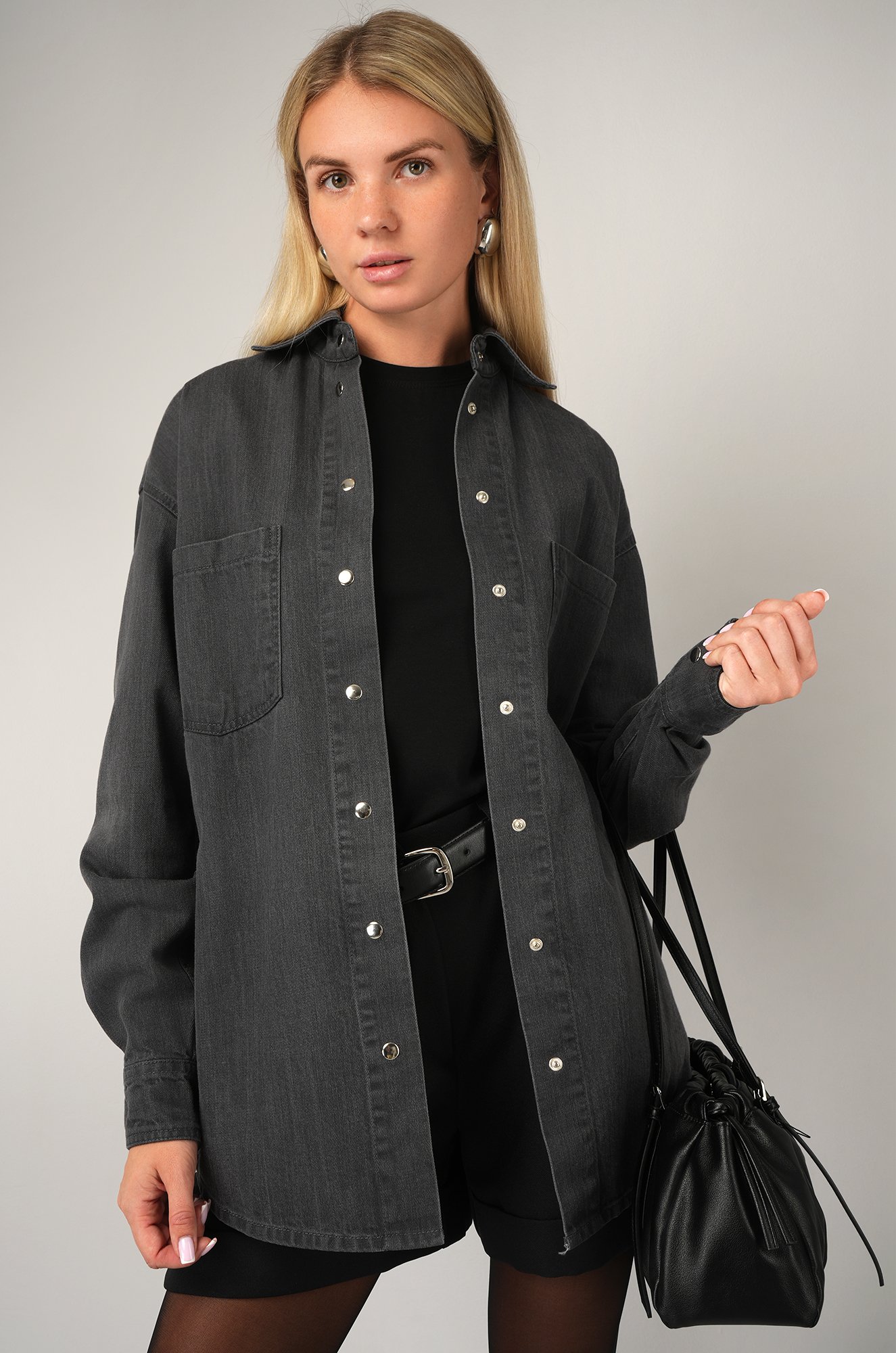 Женская джинсовая рубашка оверсайз — идеальный выбор для стильной капсулы. Серая рубашка выполнена из плотного хлопкового денима, который дарит комфорт и долговечность.