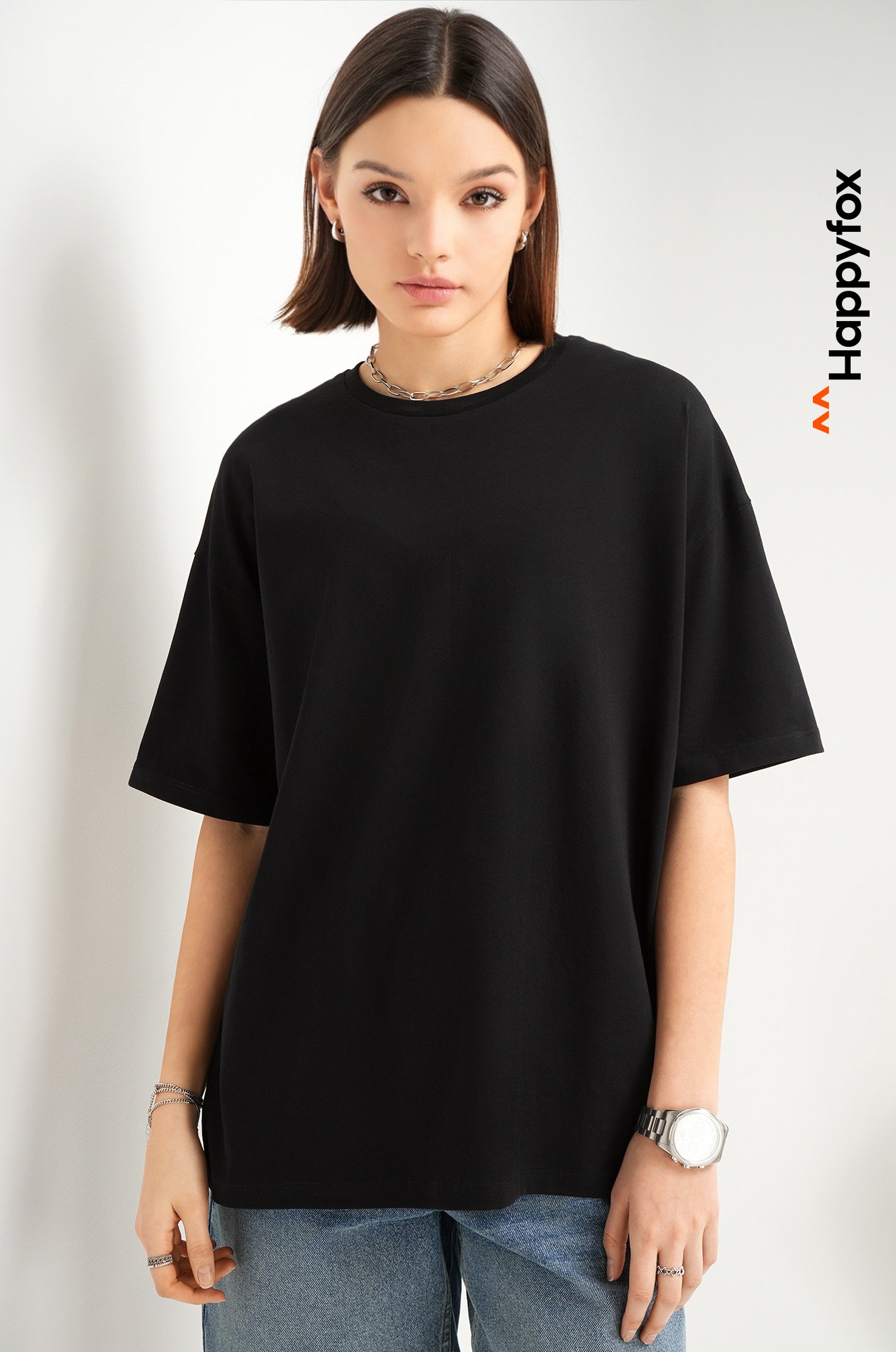 Женская футболка в стиле оверсайз — идеальная повседневная база. Её свободный крой и спущенное плечо создают непринуждённый силуэт. Однотонная трикотажная модель с круглым вырезом выглядит стильно и современно.
