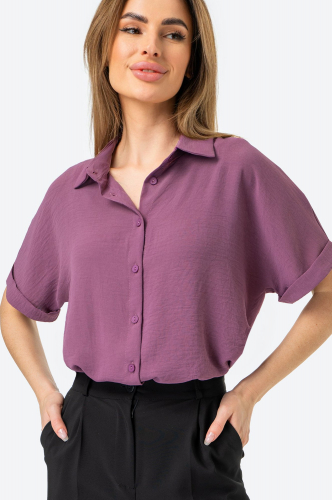 Нежная блузка из невесомой ткани жатка, подчёркивающая вашу естественную красоту, – то, что нужно для прогулок с друзьями или светских выходов. Короткий цельнокроеный рукав с отворотом, удлиненная спинка и разрезы по бокам добавят лёгкости и изящности!
