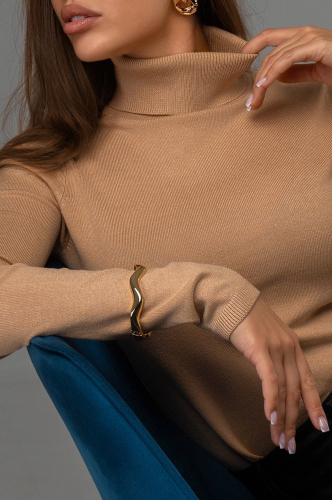 Классическая женская водолазка – идеальный выбор для образов на осень и весну. Бежевый джемпер с воротником выполнен из вязаного трикотажа, в нем будет уютно и тепло в прохладную погоду.
