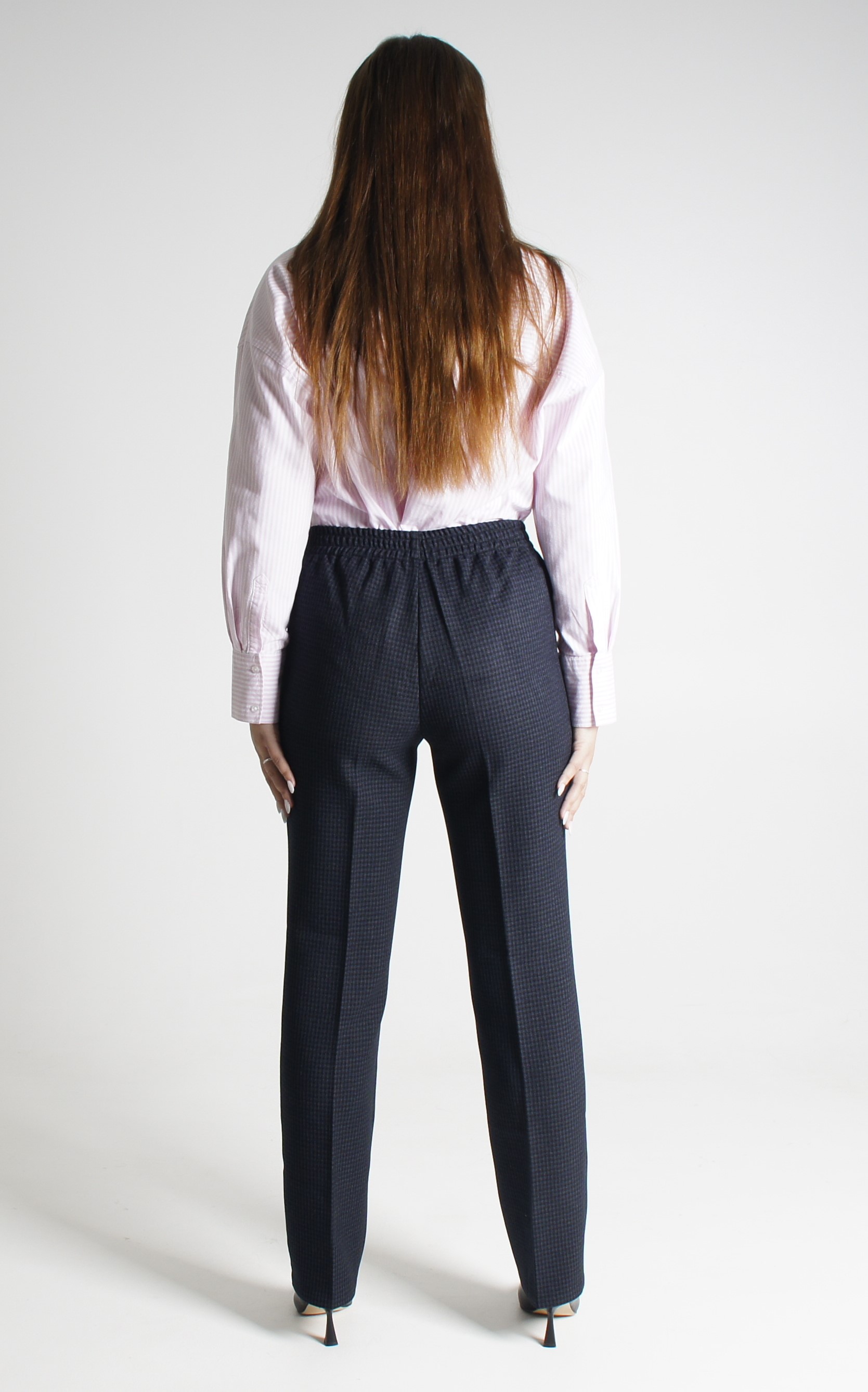 Женские брюки зима Классика резинка костюмная синяя клетка