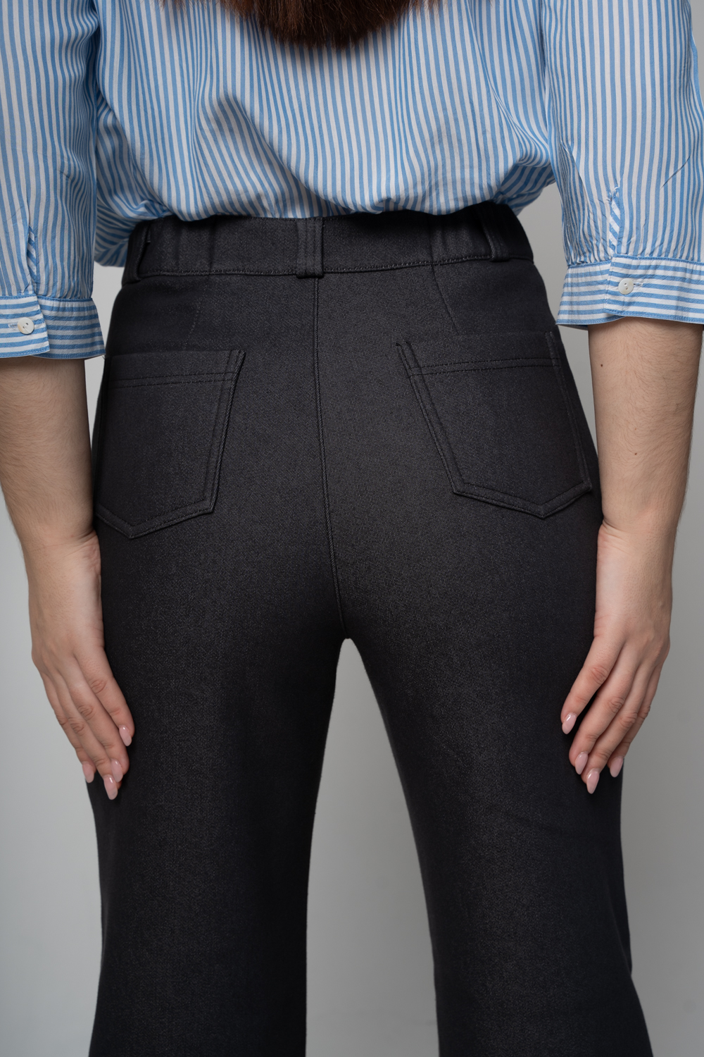 Брюки прямого кроя, верх на поясе, ширина 4 см,сзади в пояс вставлена резина, что помогает подобрть размер по талии.Застежка на молнии и пуговицу.Имется шлевки для ремня.На задней половине брюк имеются накладные карманы.Ткань джинс на флисе.Состав:Хлопок 95%, Эластан 5%Длина по боковому шву 108 см, по шаговому 84 см, ширина внизу 25 см.