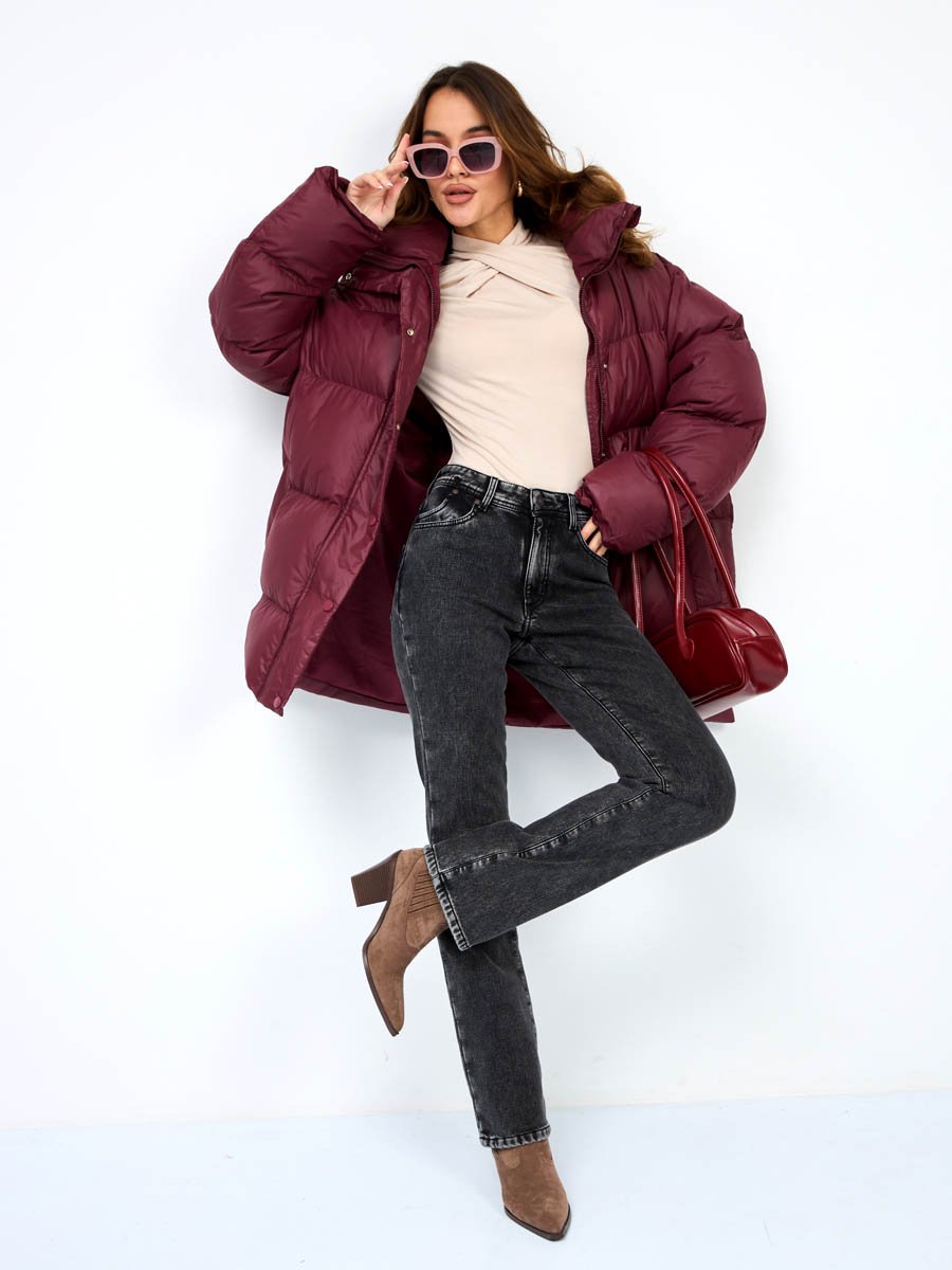 Женские классические утепленные джинсы с посадкой Regular fit (полуоблегающие по бедру), прямые к низу от колена. Высокая талия. Для улучшения посадки по талии сделан подкройной пояс из 2-х частей. Выполнены из утепленной слабоэластичной ткани Black denim comfort stretch, к изнаночной ткани прикреплена дополнительная трикотажная ткань (флис) с мягким, шелковистым и приятным на ощупь ворсом. Специальная темная стирка  "towel wash", мраморный эффект.