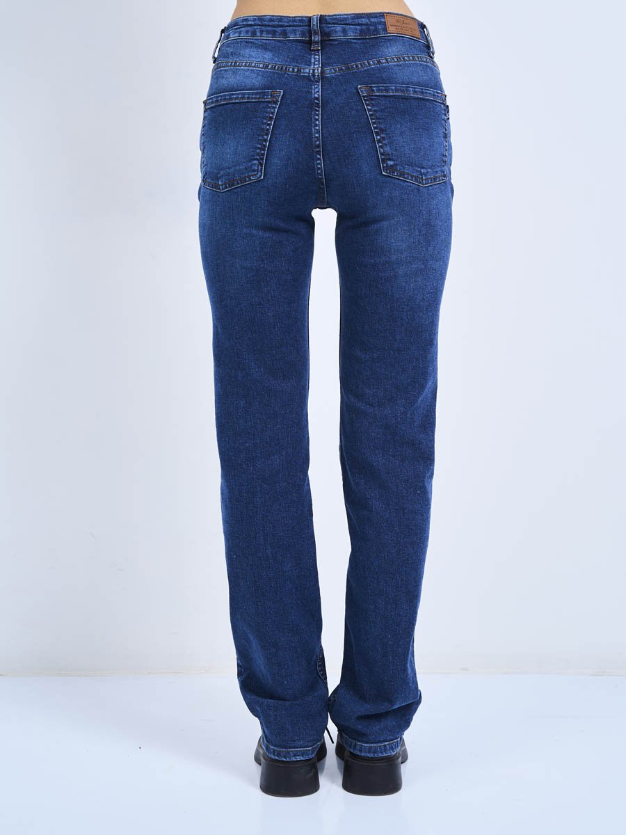 Женские классические джинсы с пятью карманами. Посадка Regular fit (полуоблегающие по бедру). Для улучшения посадки по талии сделан подкройной пояс из 2-х частей. Средняя высота талии спереди и высокая сзади. Застежка на молнии. Немного зауженные к низу. Выполнены из слабоэластичной ткани denim comfort stretch. Средняя стирка со слабовыраженными потёртостями и "усами"спереди и потертостями сзади. Параметры указаны для размера 28. Длина внутреннего шва - 80,0 см.
