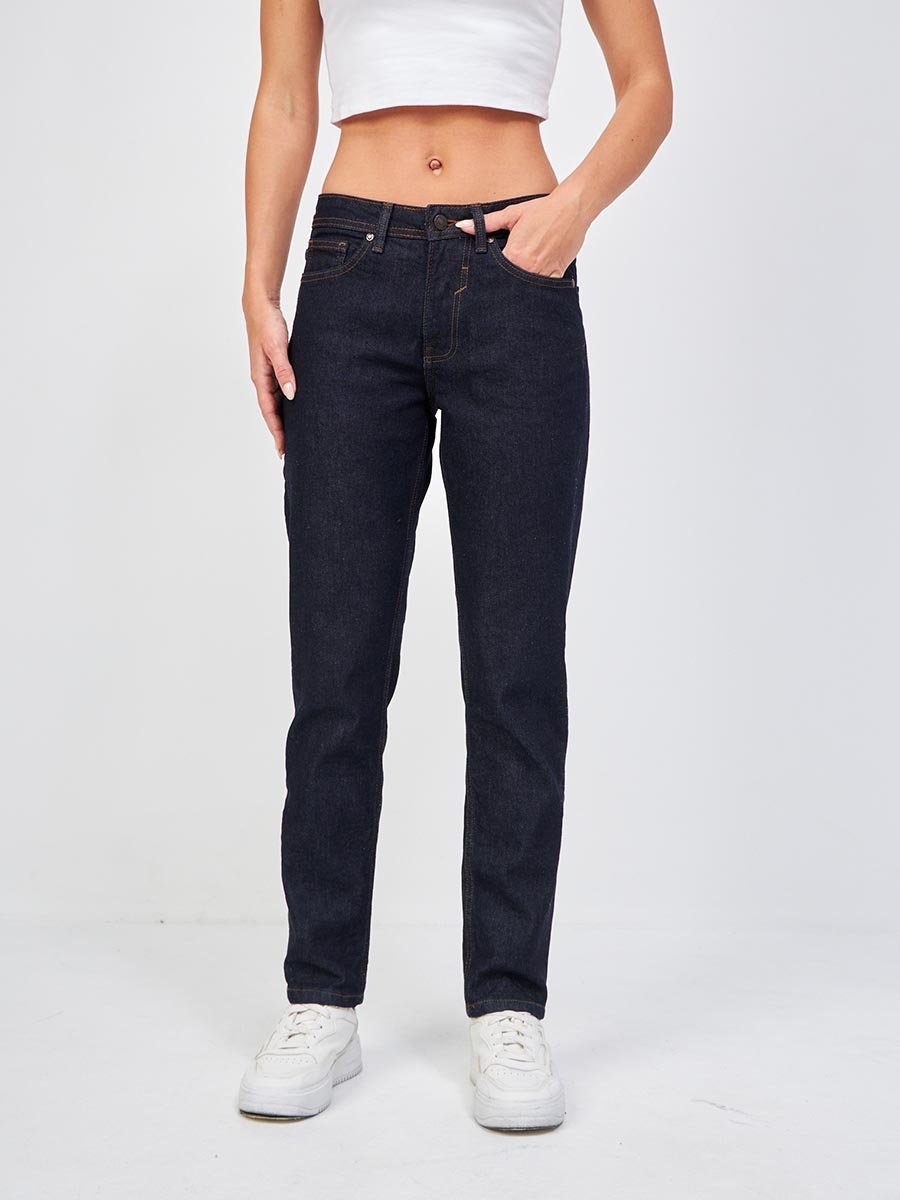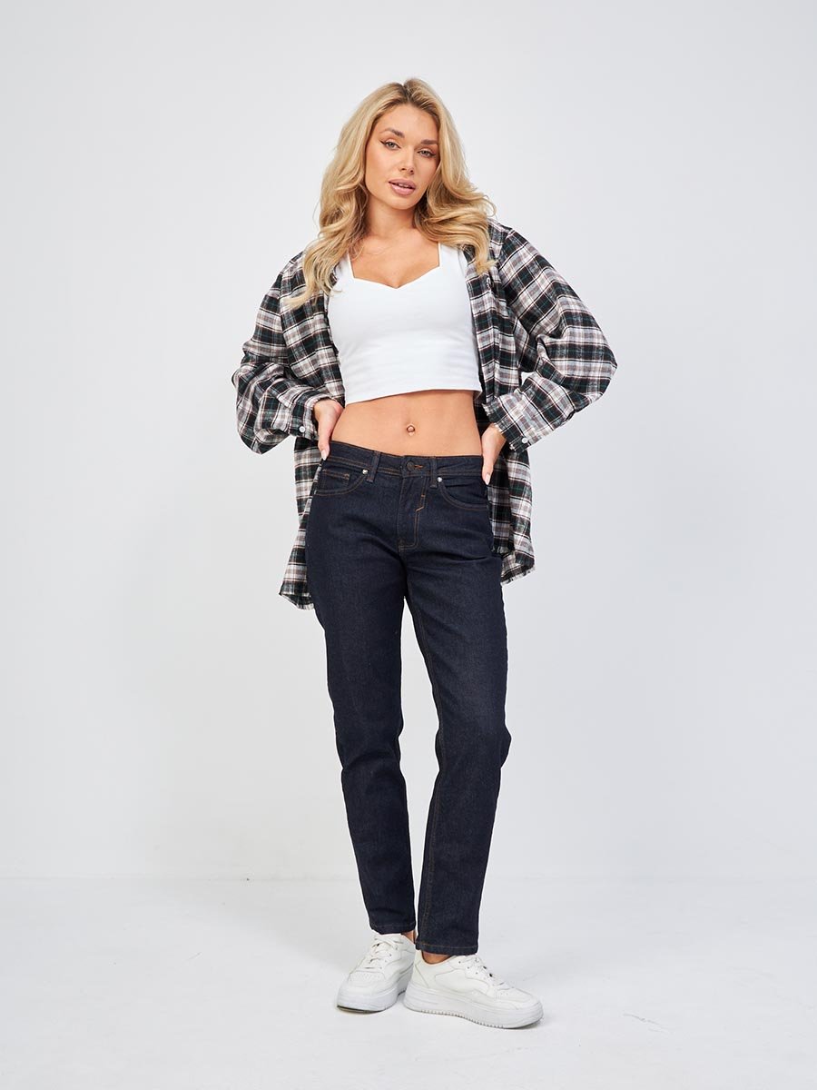 Джинсы женские Boyfriend Fit  ваша идеальная пара для уютного стиля!                                                  Эти джинсы созданы для того, чтобы подарить вам ощущение свободы и уверенности. Это крой, вдохновленный любимыми джинсами из мужского гардероба, но с продуманной женственной посадкой, которая подчеркивает достоинства вашей фигуры. Свободные по бедру, зауженные к низу и укороченной длины  создают силуэт, который  визуально стройнит и удлиняет ноги, делая образ изящным и современным.  Использование ткани  Comfort  Stretch и подкройной пояс из двух частей обеспечивают наилучшее  облегание в талии без дискомфорта. Средняя высота пояса спереди и высокая сзади  обеспечивают дополнительное удобство в процессе носки. Специальная щадящая стирка сохраняет глубокий и насыщенный цвет денима, создавая эффект новизны, но при этом ткань сразу же мягкая и приятная к телу.                      Мы создали их для тех, кто ценит комфорт, не жертвуя стилем.