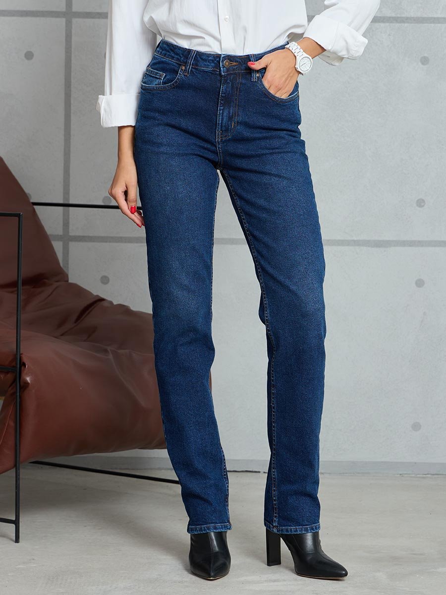 Женские классические джинсы с пятью карманами. Посадка Comfort fit (свободные по бедру). Специально завышенная талия. Для улучшения посадки по талии сделан подкройной пояс из 2-х частей. Застежка на молнии. Зауженные к низу. Выполнены из слабоэластичной ткани denim stretch. Темная стирка "stone wash" со слабовыраженными потертостями спереди и сзади.
