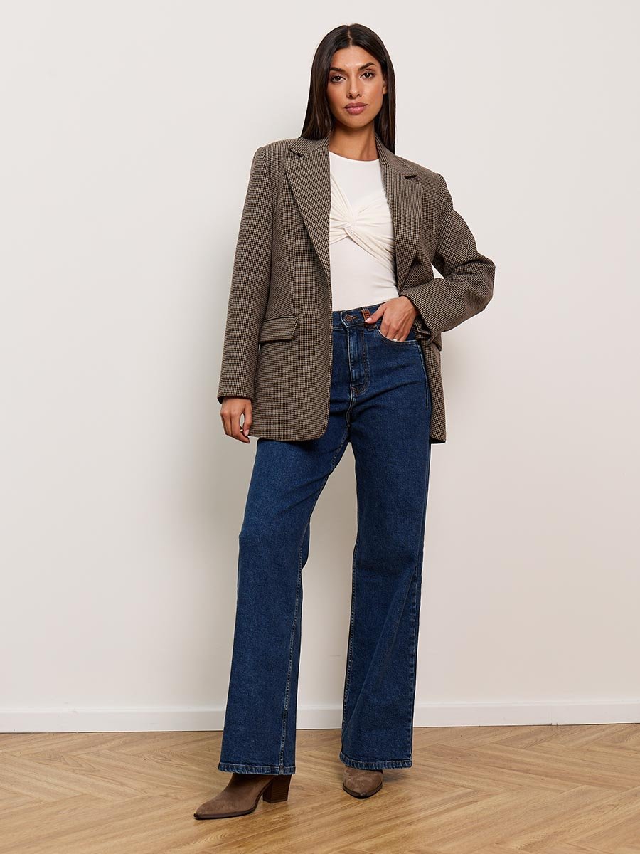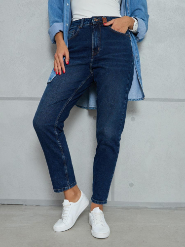 Женские модные джинсы с пятью карманами. Посадка Baggy fit , высокая талия спереди и сзади, широкие штанины по всей длине. Для лучшего облегания в области бедер под передними карманами сделана вытачка. Под входом в правый передний карман вышивка. Застежка на молнии. Выполнены из слабоэластичной ткани denim comfort stretch. Средня стирка "stone wash".