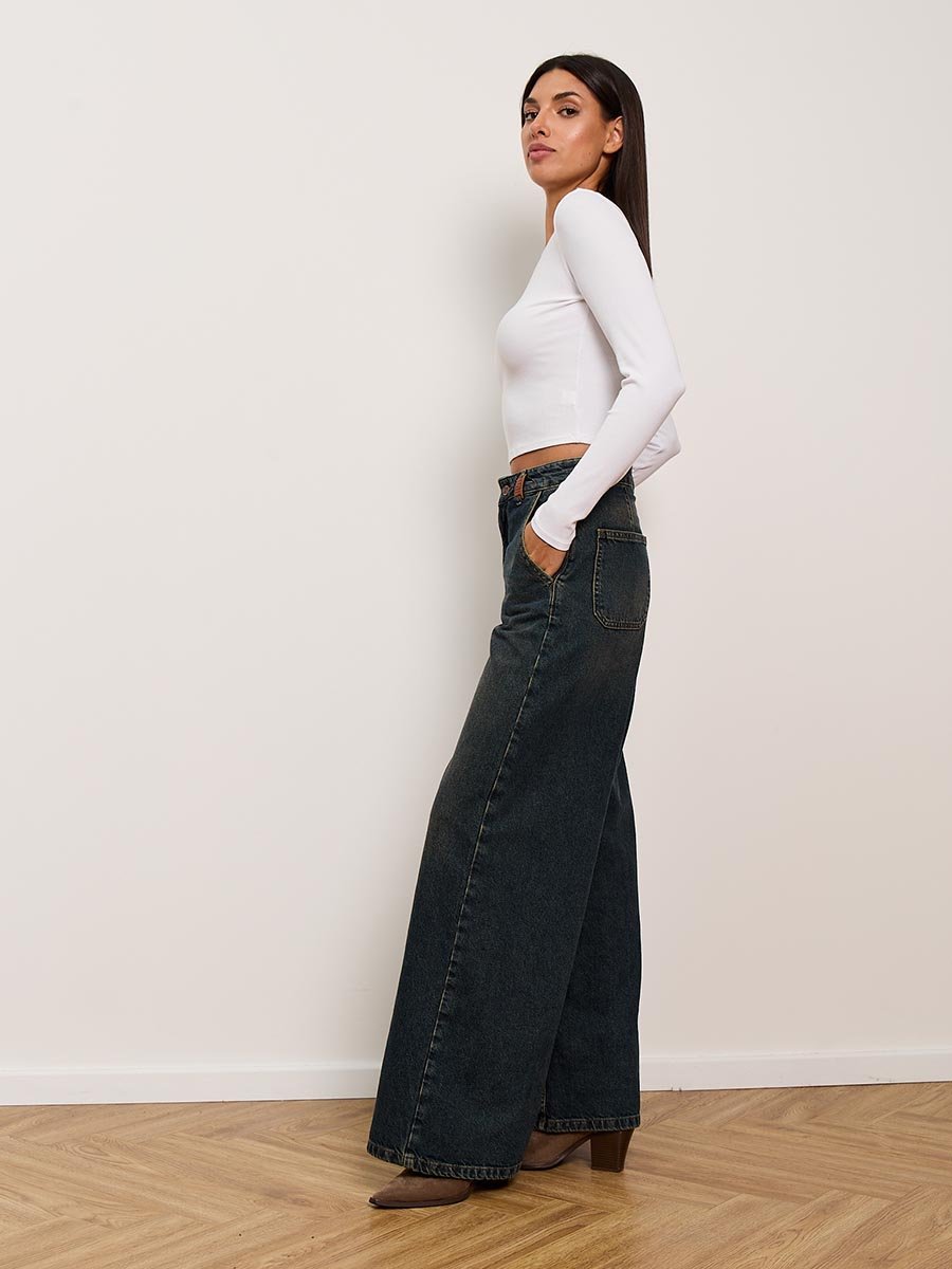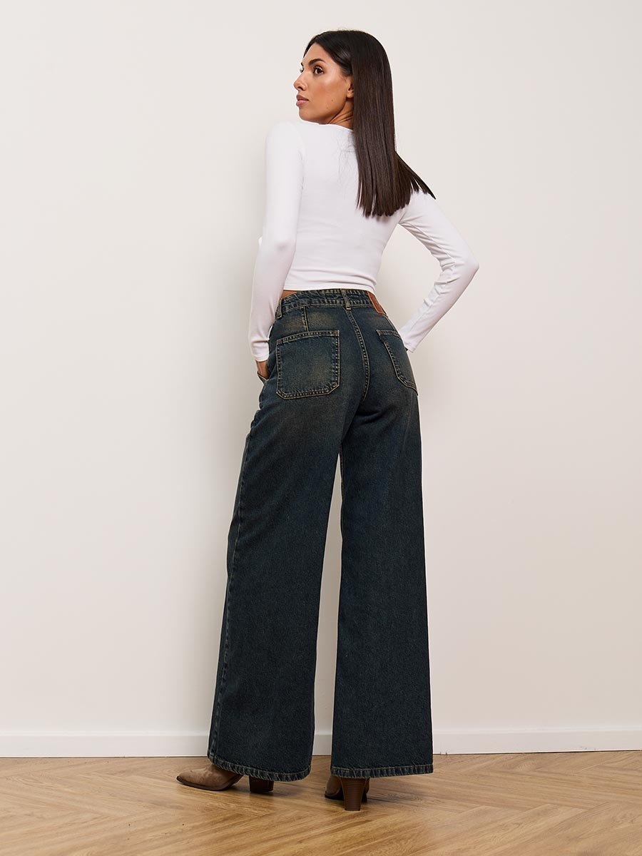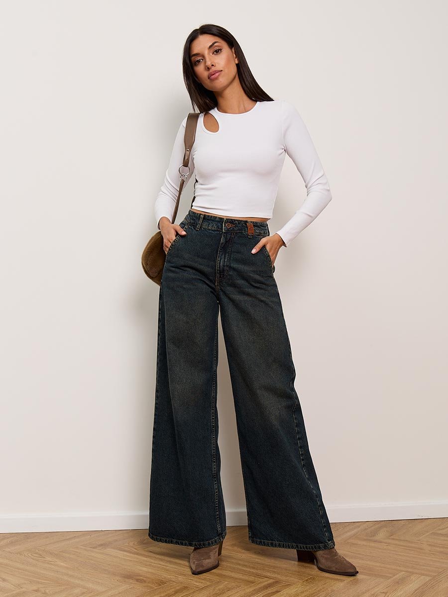 Откройте для себя безграничный комфорт и стиль с нашими джинсами ПАЛАЦЦО (PALAZZO). Эти широкие джинсы с высокой посадкой идеально подходят для создания расслабленного, но элегантного образа. Также идеально подходят как для повседневной носки так и для особых случаев. Изготовленняые из мягкого традиционного денима, они обеспечивают полное сочетание удобства и долговечности. Высокая талия с вытачками сзади для улучшения посадки пояса, карманы "хулиганы", свободные штанины сильно расширяющиеся к низу, позволяют получить утонченный силуэт и подчеркнуть особенности женской фигуры наилучшим образом и в тоже время обеспечить свободу движений. Эти джинсы с уникальным тинтованным эффектом "GET DIRTY", т.е. эффектом  запачканных джинсов добавят изюминку в ваш гардероб.