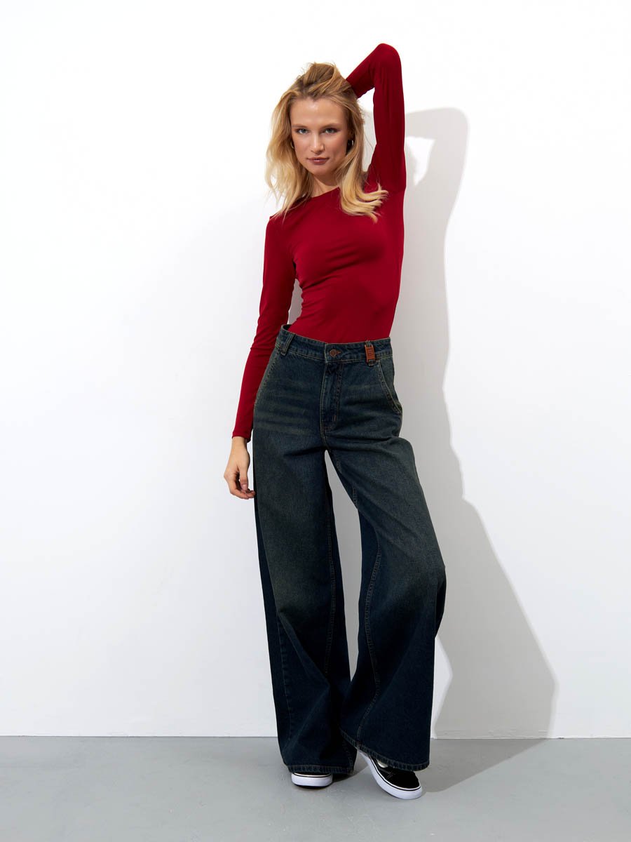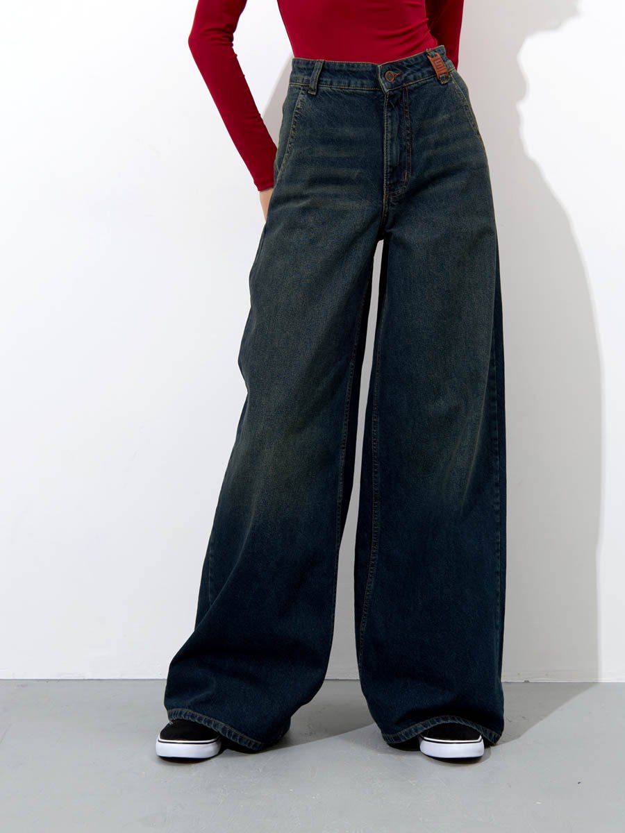 Откройте для себя безграничный комфорт и стиль с нашими джинсами ПАЛАЦЦО (PALAZZO). Эти широкие джинсы с высокой посадкой идеально подходят для создания расслабленного, но элегантного образа. Также идеально подходят как для повседневной носки так и для особых случаев. Изготовленняые из мягкого традиционного денима, они обеспечивают полное сочетание удобства и долговечности. Высокая талия с вытачками сзади для улучшения посадки пояса, карманы "хулиганы", свободные штанины сильно расширяющиеся к низу, позволяют получить утонченный силуэт и подчеркнуть особенности женской фигуры наилучшим образом и в тоже время обеспечить свободу движений. Эти джинсы с уникальным тинтованным эффектом "GET DIRTY", т.е. эффектом  запачканных джинсов добавят изюминку в ваш гардероб.